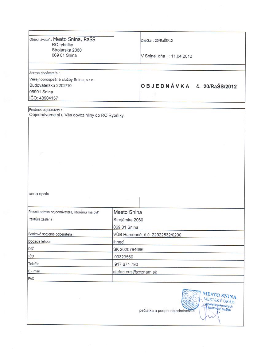Detail objednávky 20-RaŠS-2012