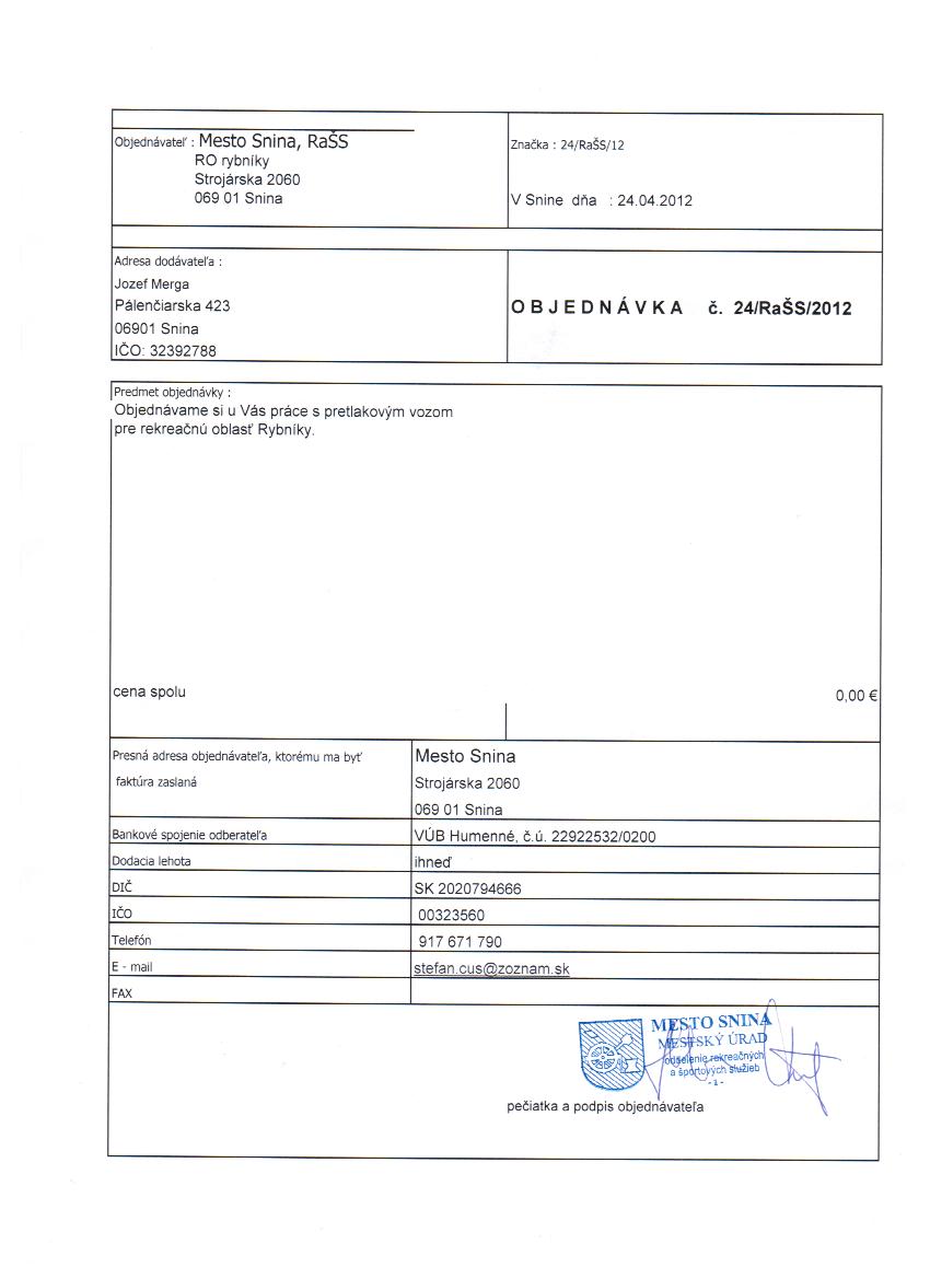 - Mesto Snina, RaŠS, Strojárska 2060, 06901 Snina