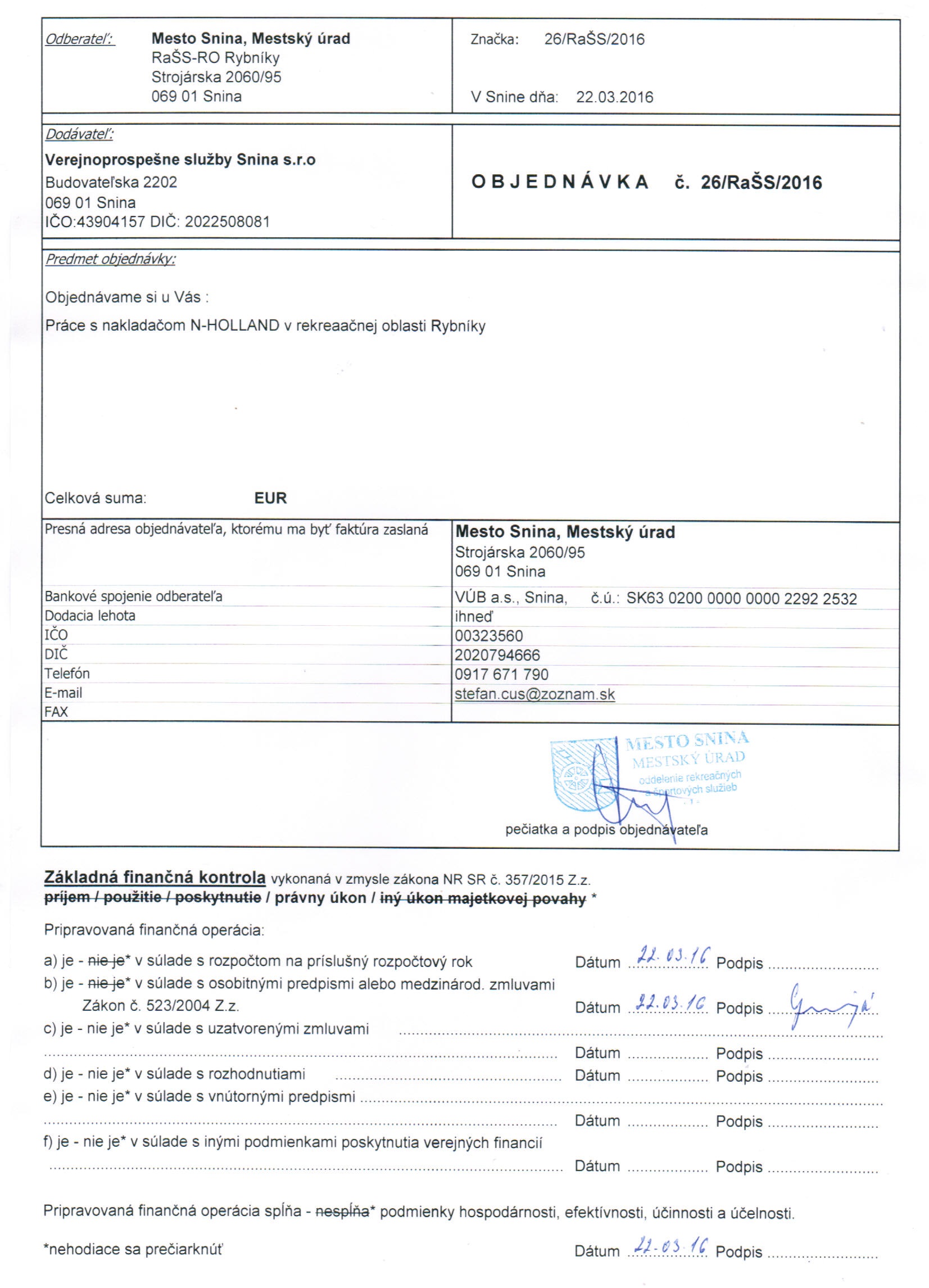 Detail objednávky 26-RaŠS-2016