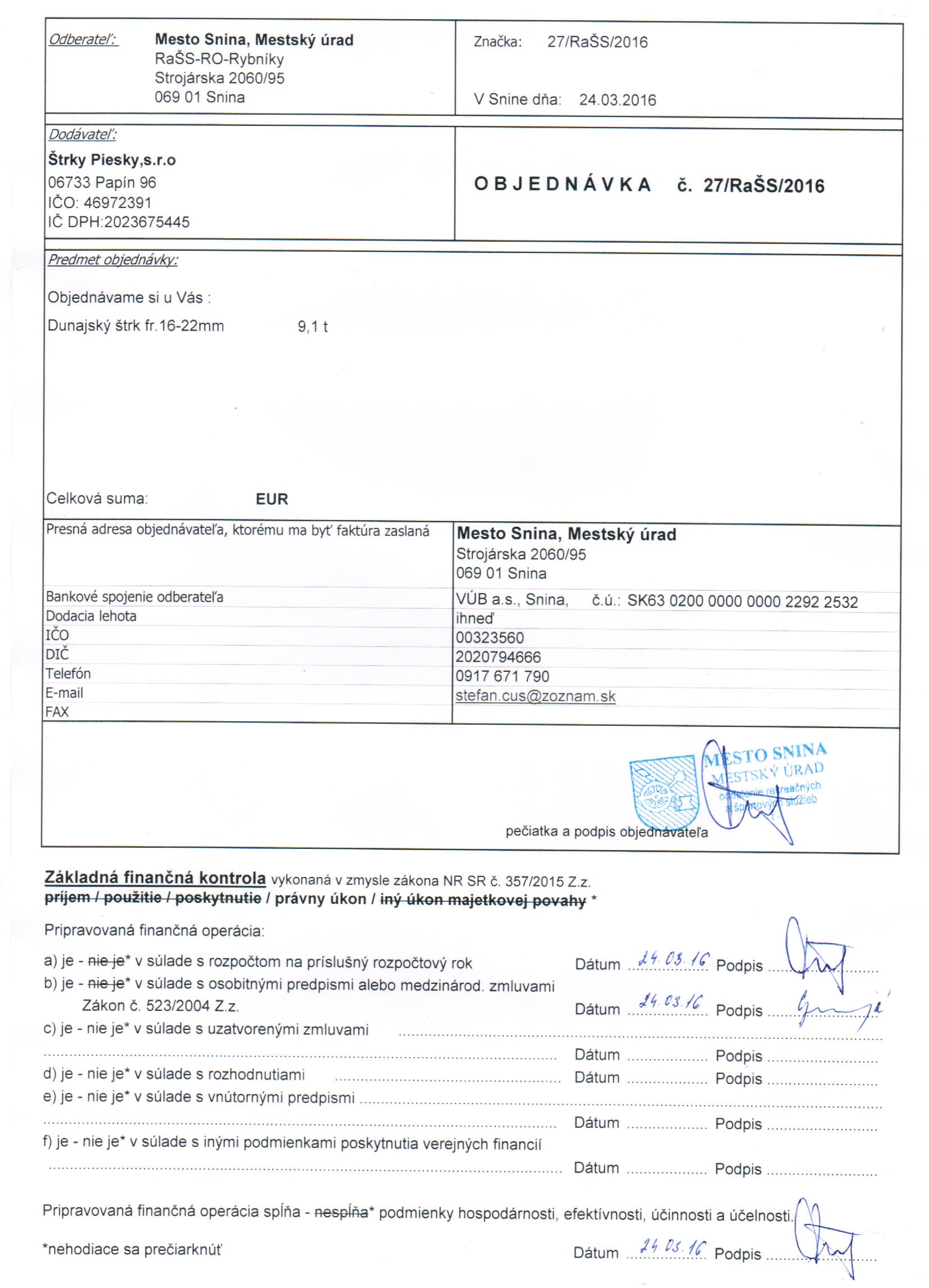 Detail objednávky 27-RaŠS-2016