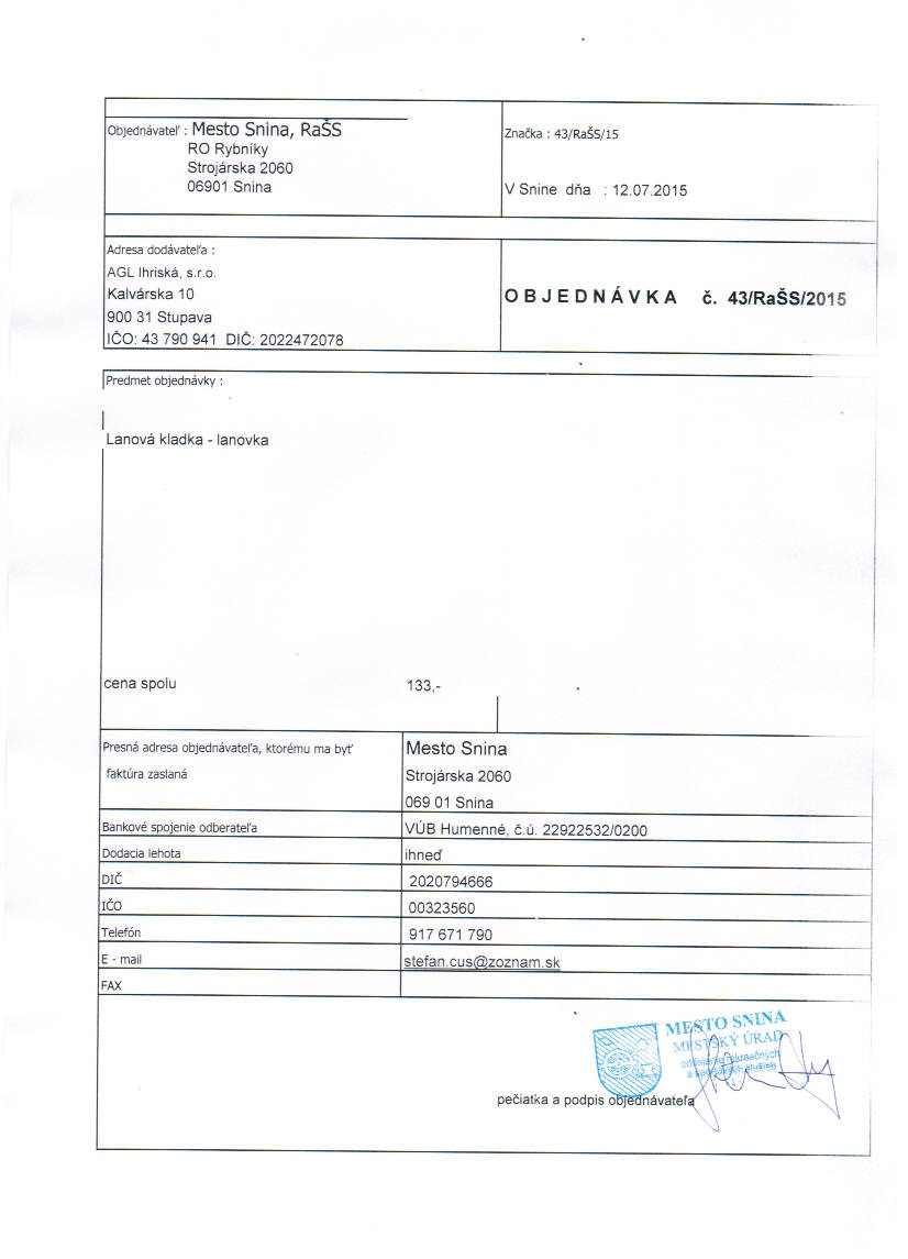 - Mesto Snina - RO Rybníky, Strojárska 2060, 06901 Snina