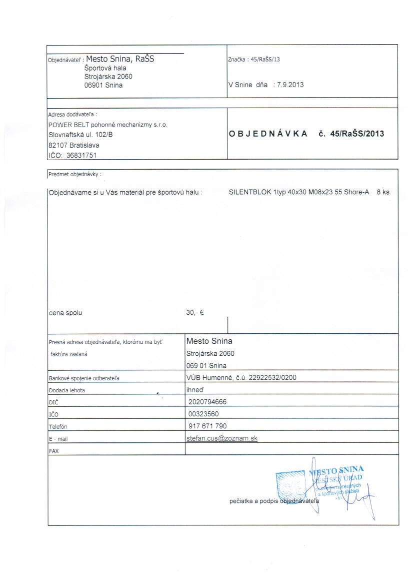 - Ku zmluve č.: 45-RaŠS-13 SILENTBLOK 1 typ