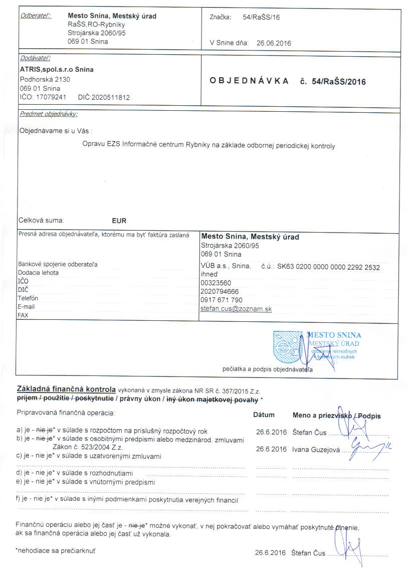 - ATRIS spol. s.r.o., Podhorská 2130, 069 01 Snina