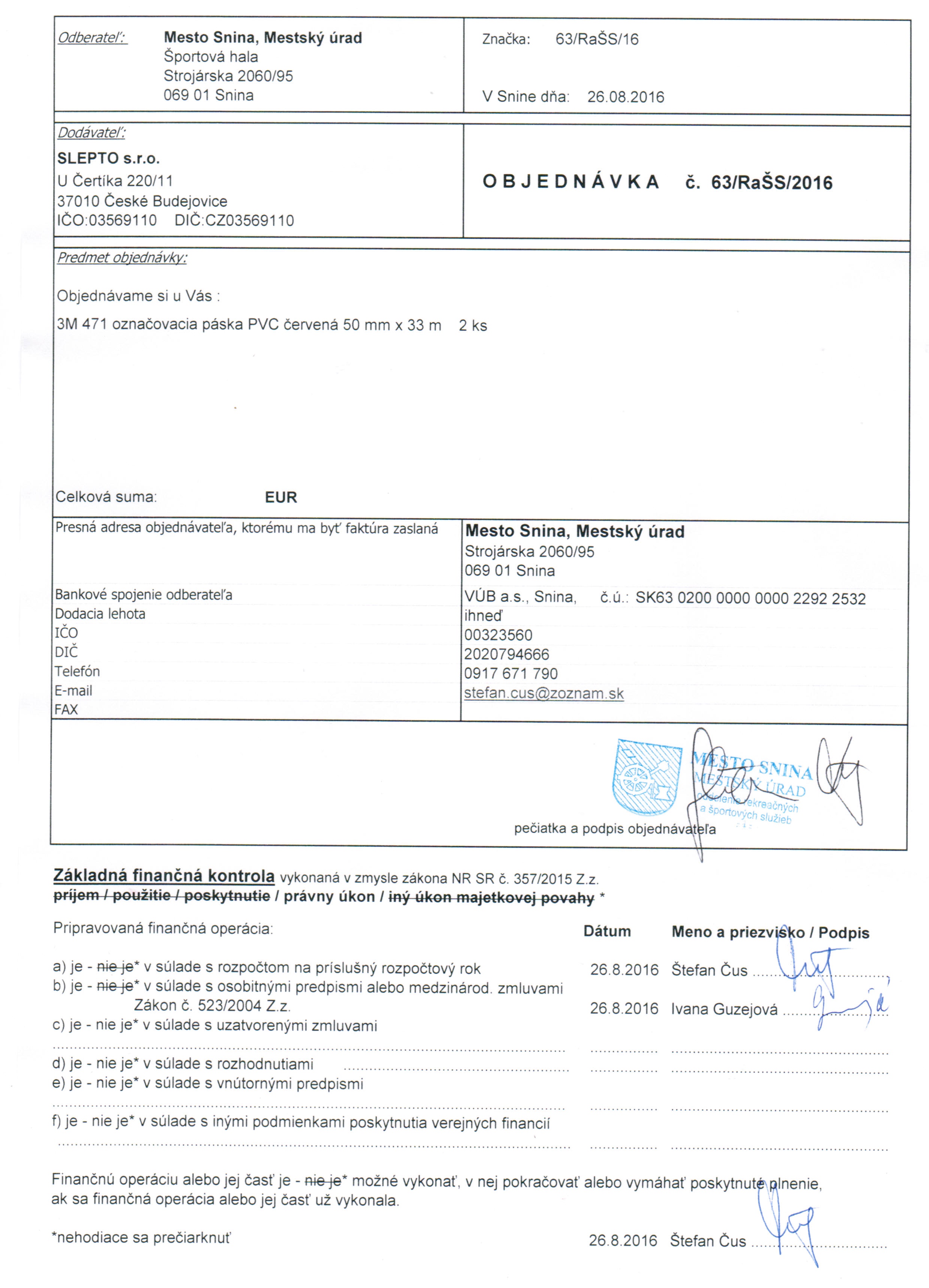 Detail objednávky 63-RaŠS-2016