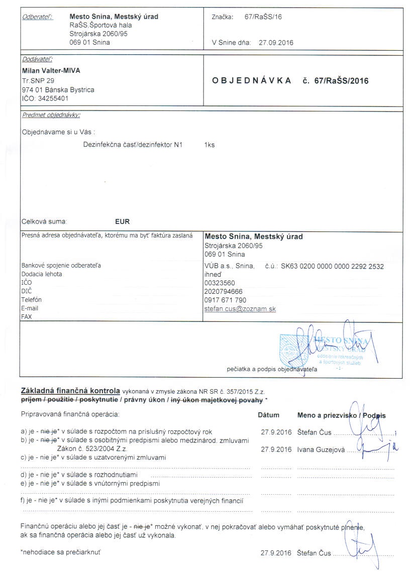 Detail objednávky 67-RaŠS-2016