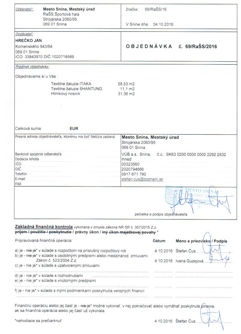 Detail objednávky 69-RaŠS-2016