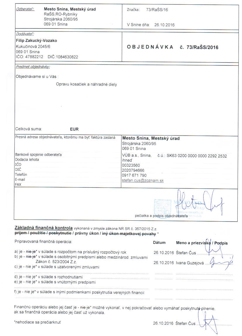 - Mesto Snina - RO Rybníky, Strojárska 2060, 06901 Snina
