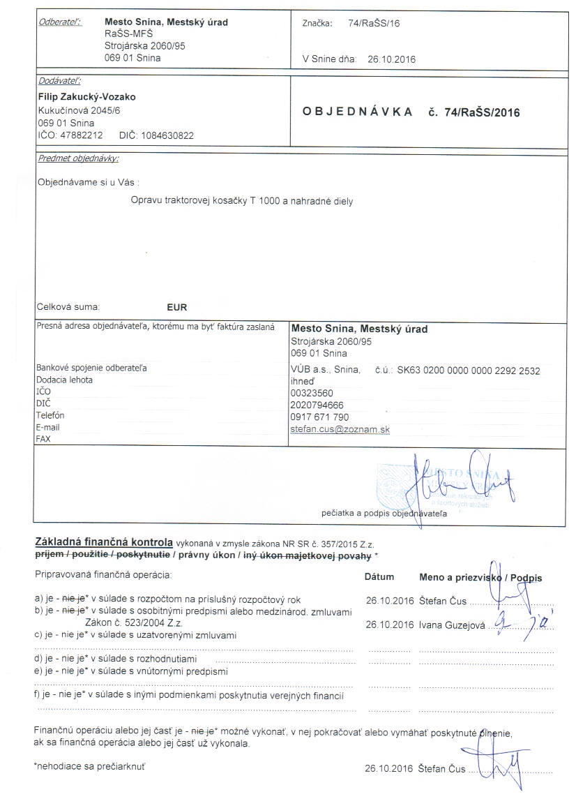 - Mesto Snina, RaŠS-MFŠ, Strojárska 2060, 06901 Snina
