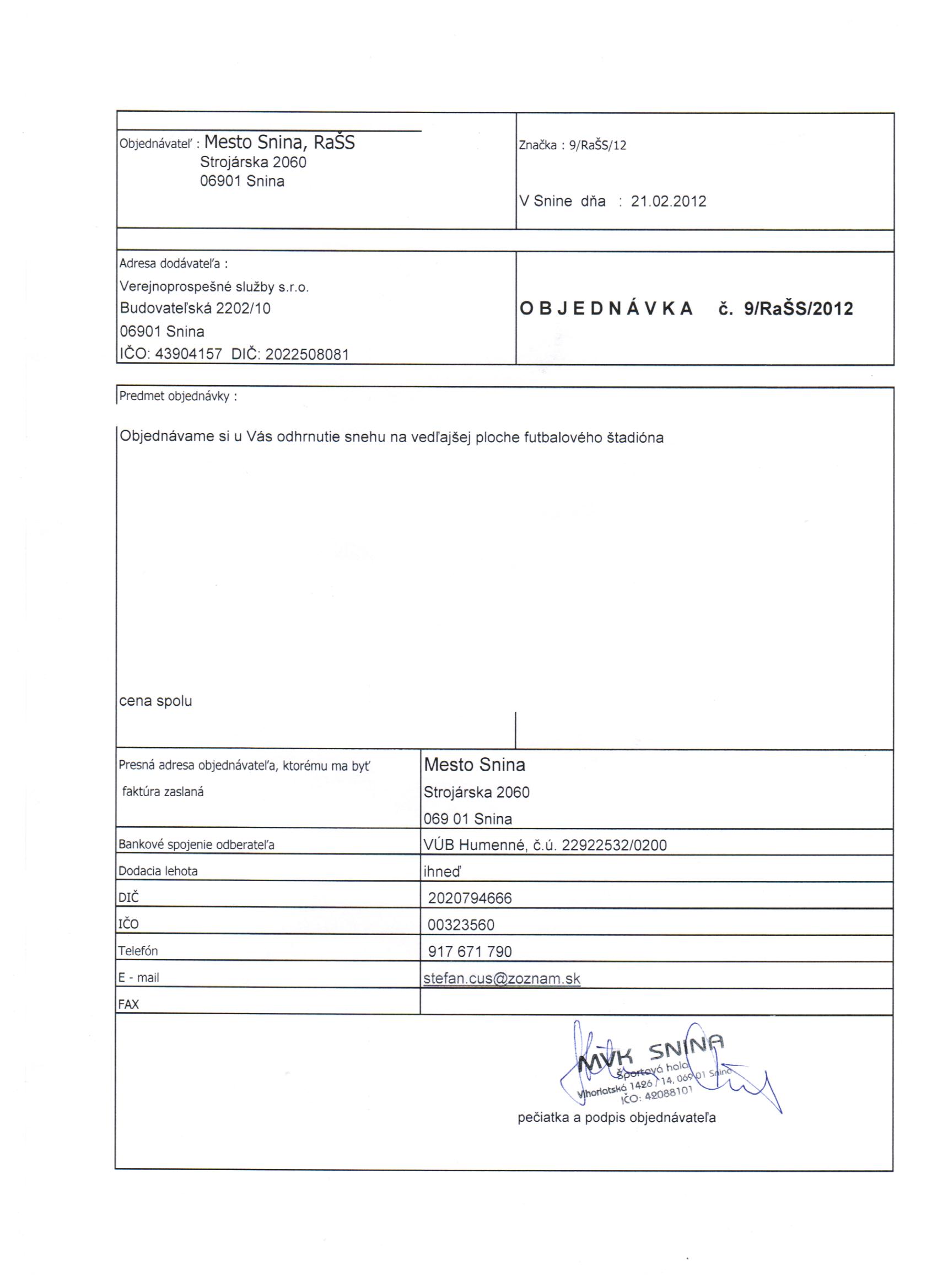 Detail objednávky 9-RaŠS-2012