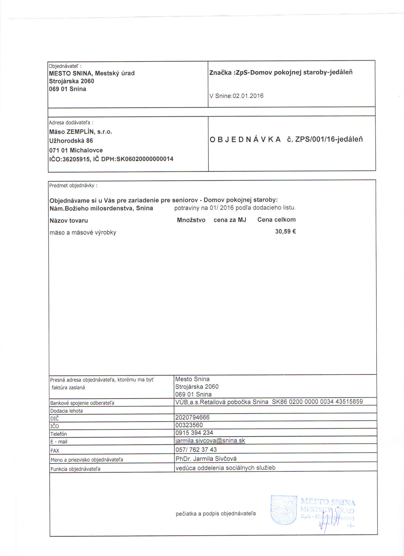Detail objednávky ZPS/001/16-jedáleň
