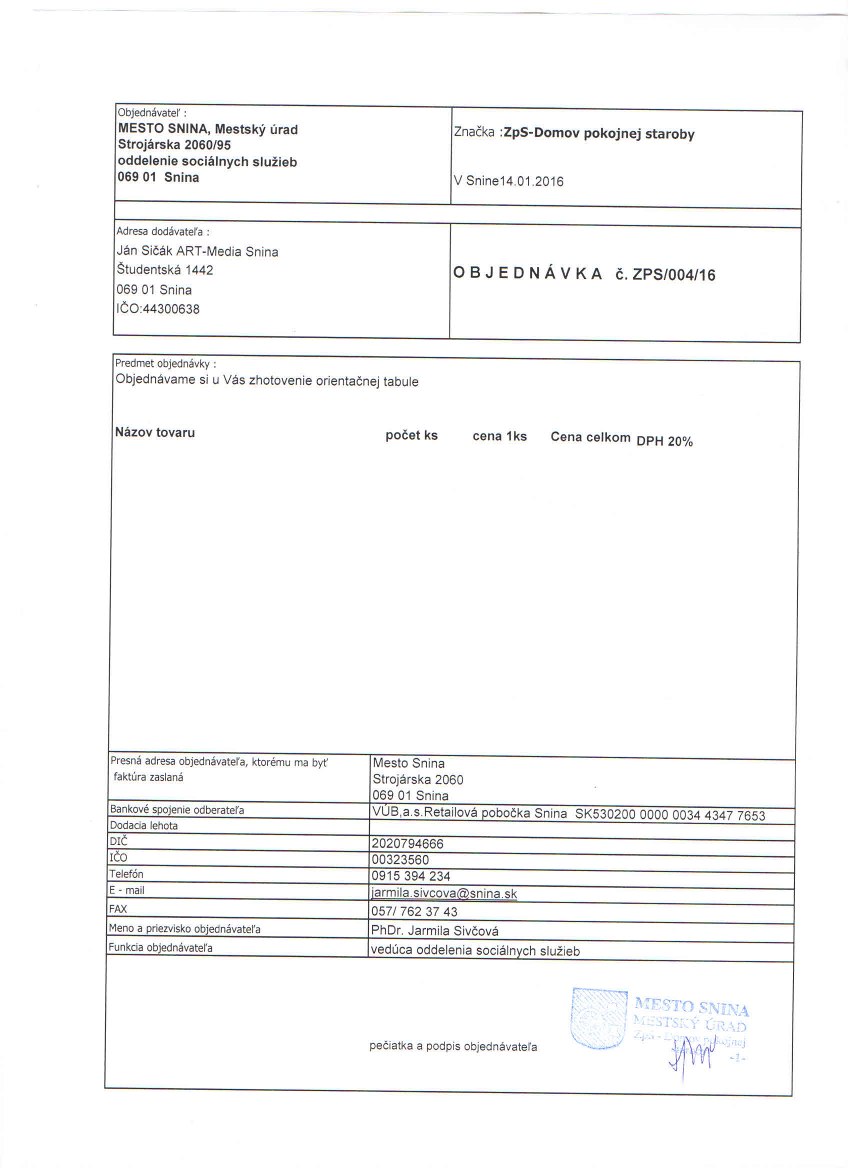 - Ján Sičák ART-MEDIA, Pčolinská 1409/39, 069 01 Snina