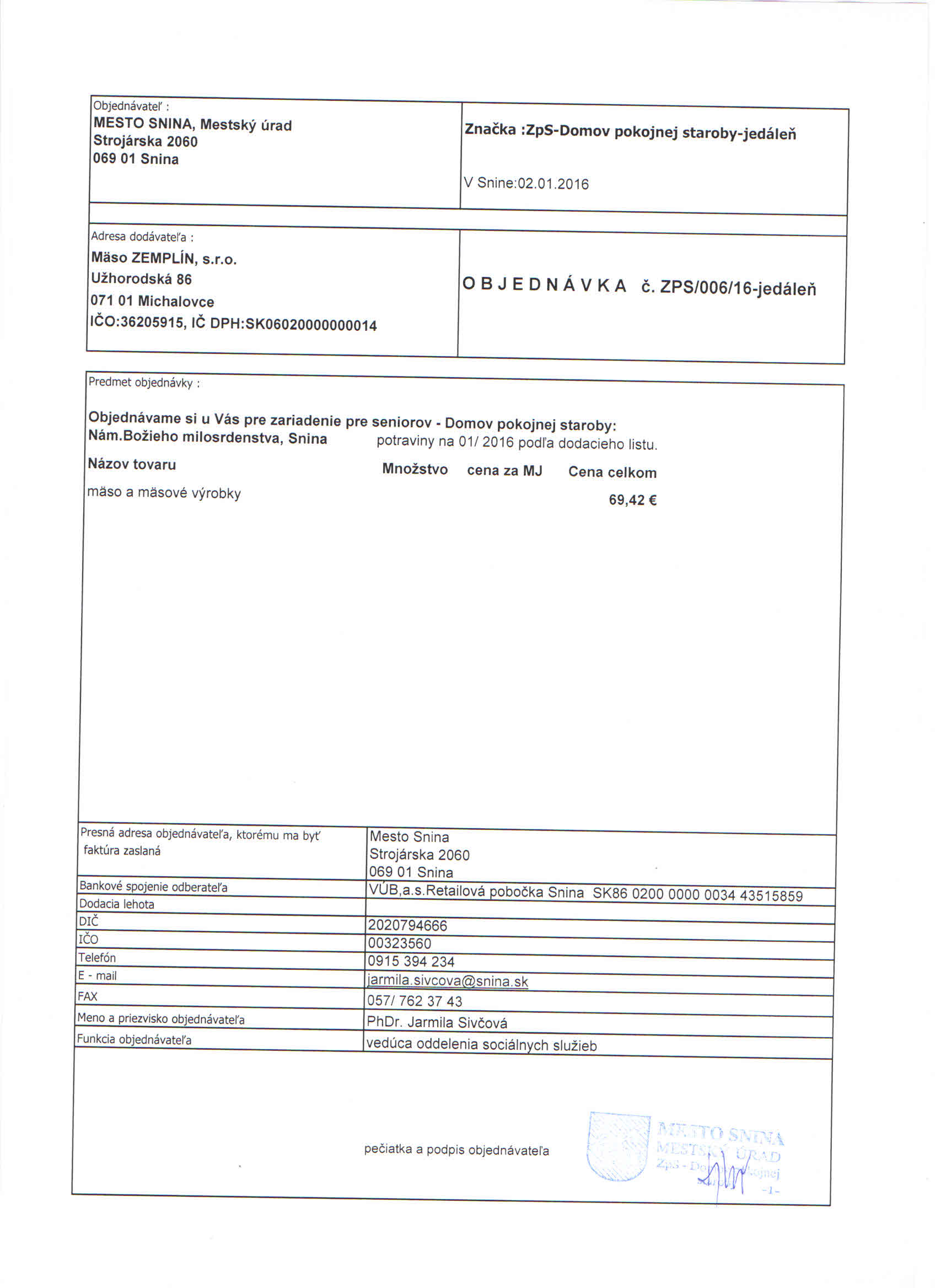 Detail objednávky ZPS/006/16-jedáleň