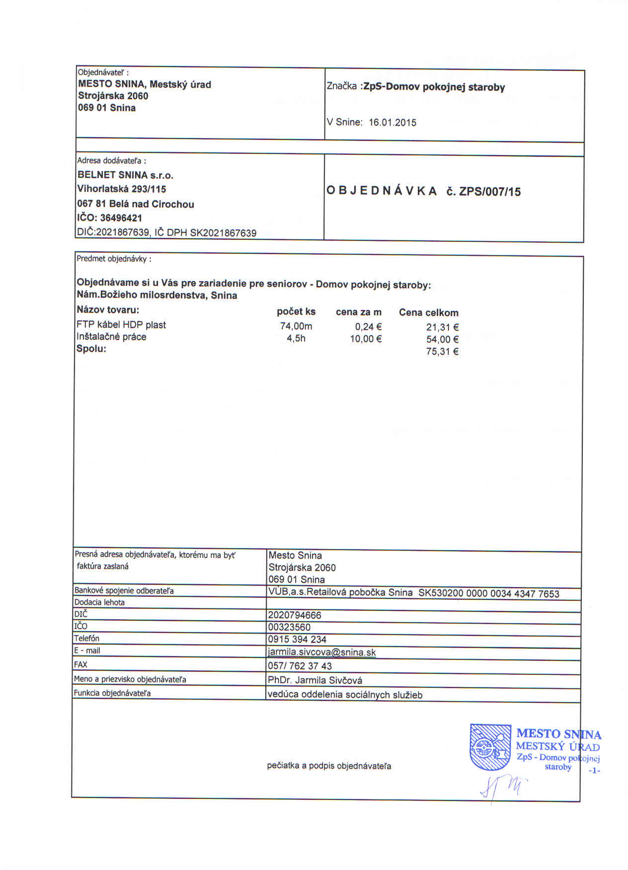 Detail objednávky ZPS/007/15