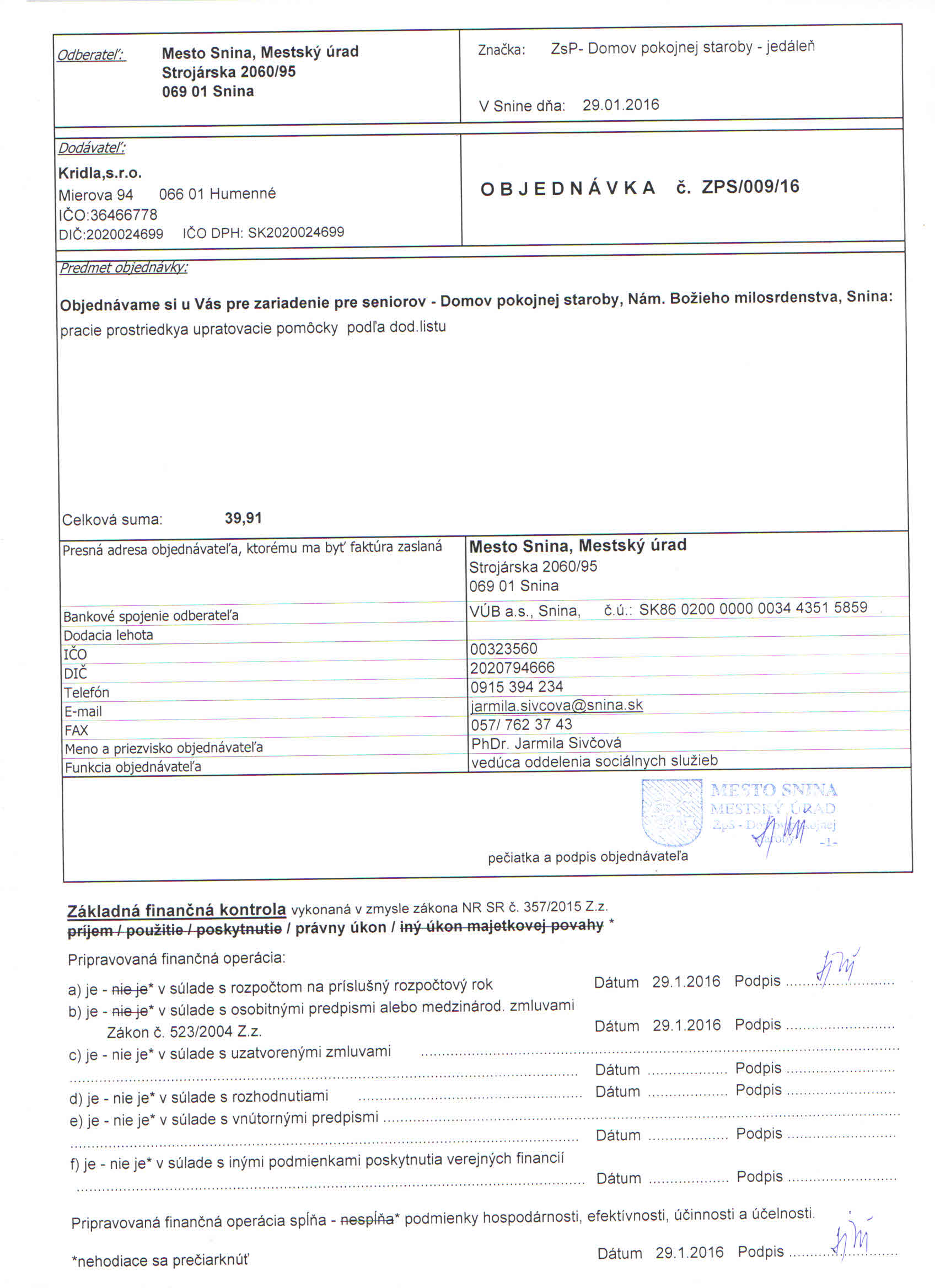 - Mesto Snina, Mestský úrad, Strojárska 2060/95, 069 01 Snin