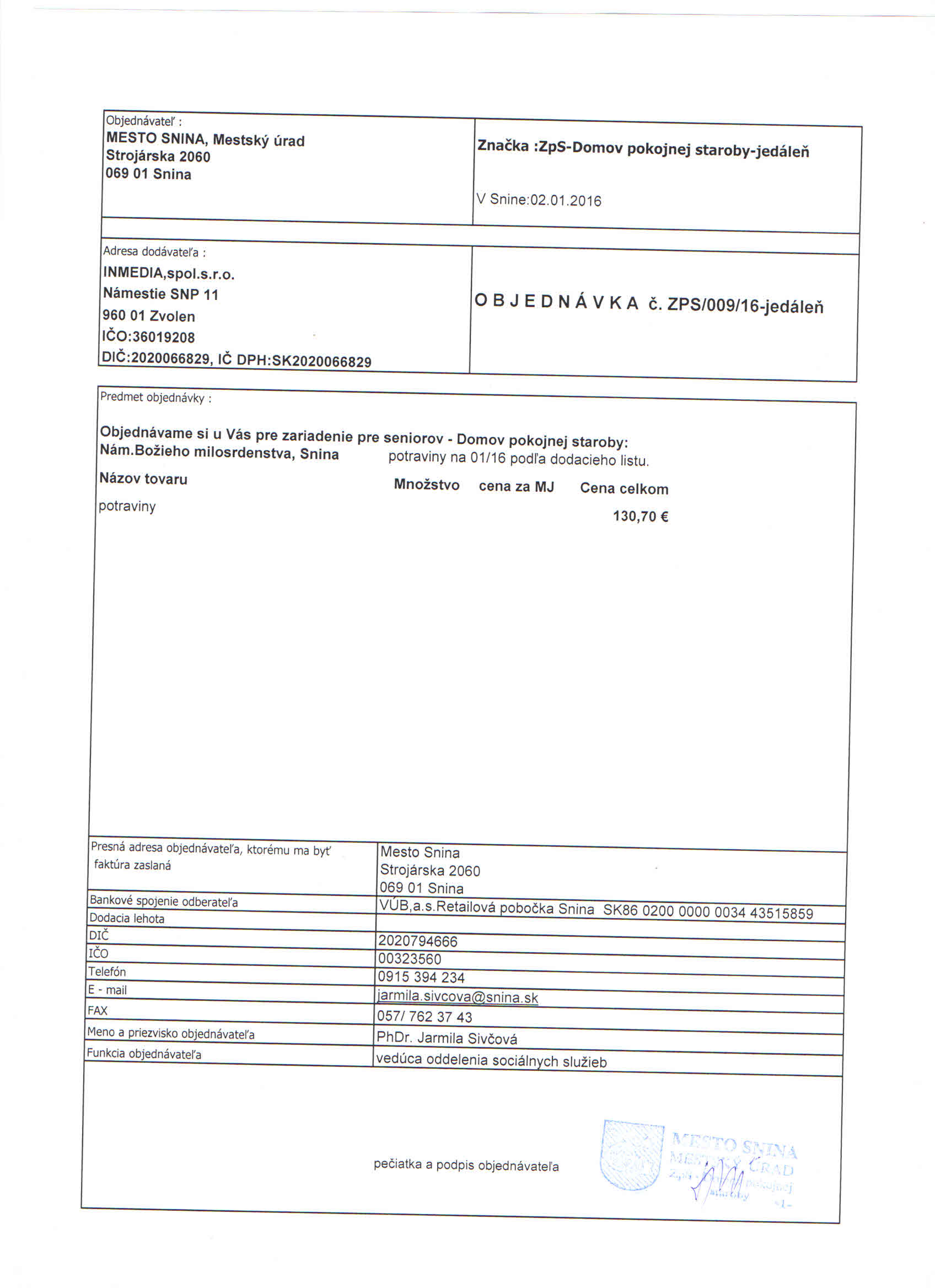 Detail objednávky ZPS/009/16-jedáleň