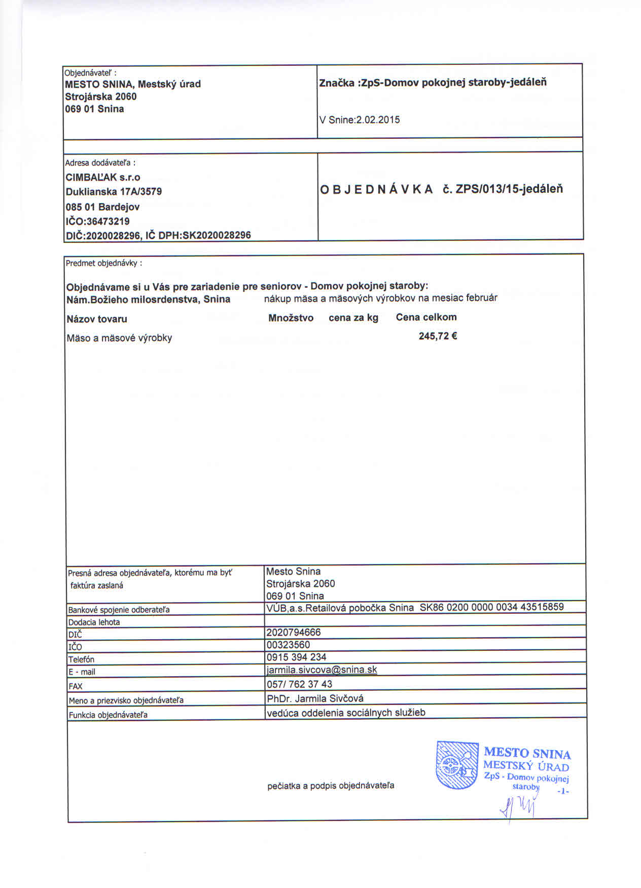 Detail objednávky ZPS/013/15-jedáleň