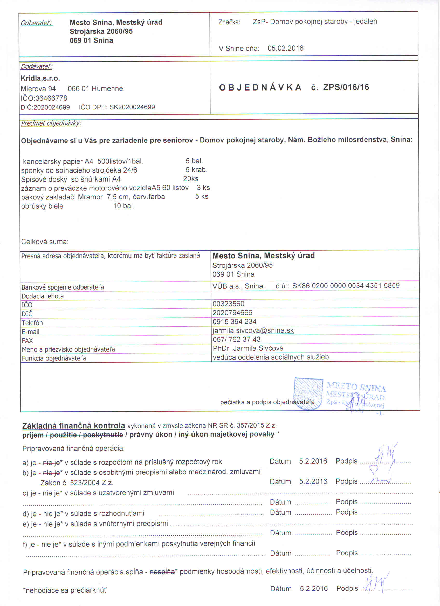 - Mesto Snina, Mestský úrad Snina, Strojárska 2060/95, 069 01 Snina