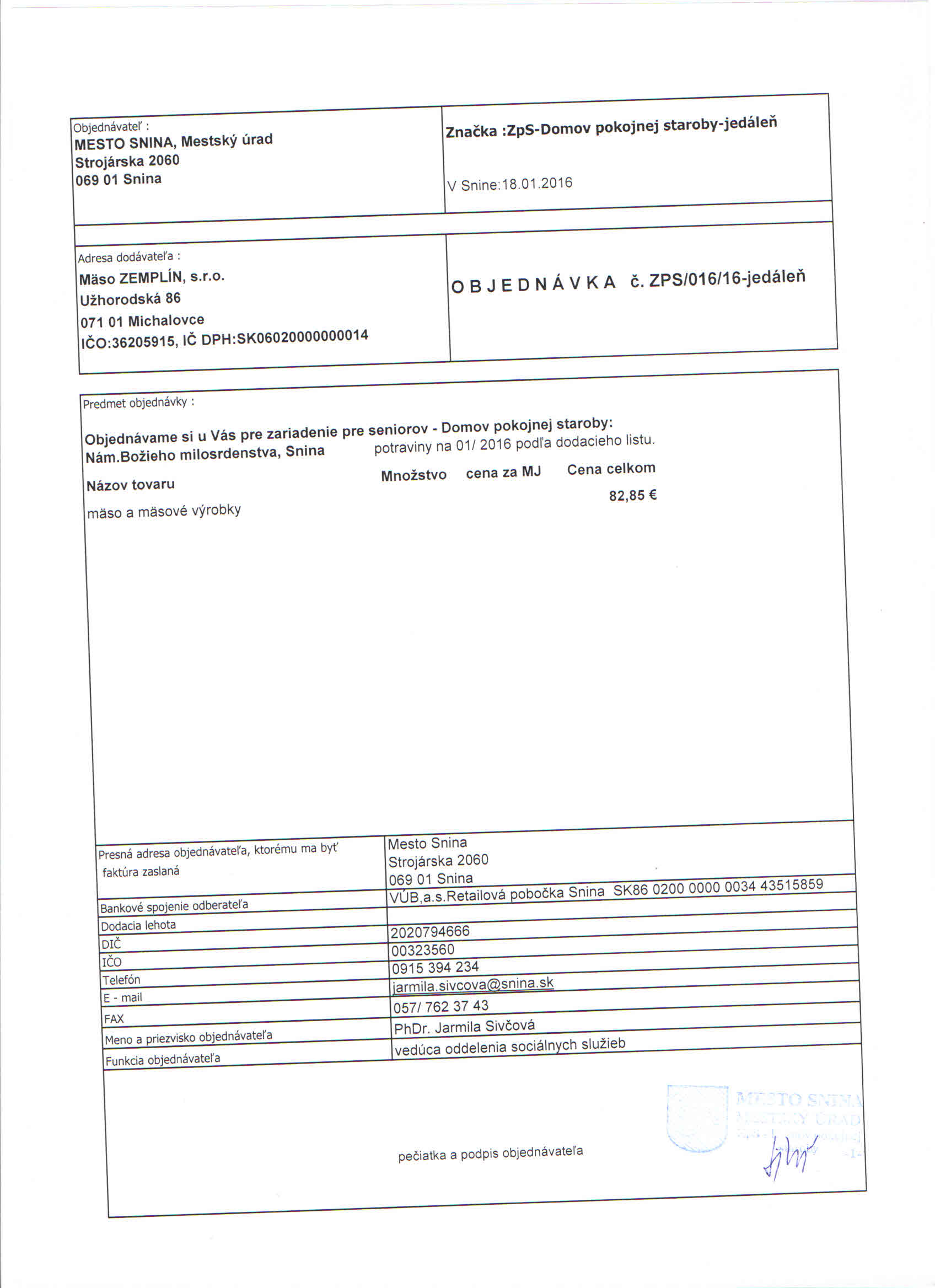 Detail objednávky ZPS/016/16-jedáleň
