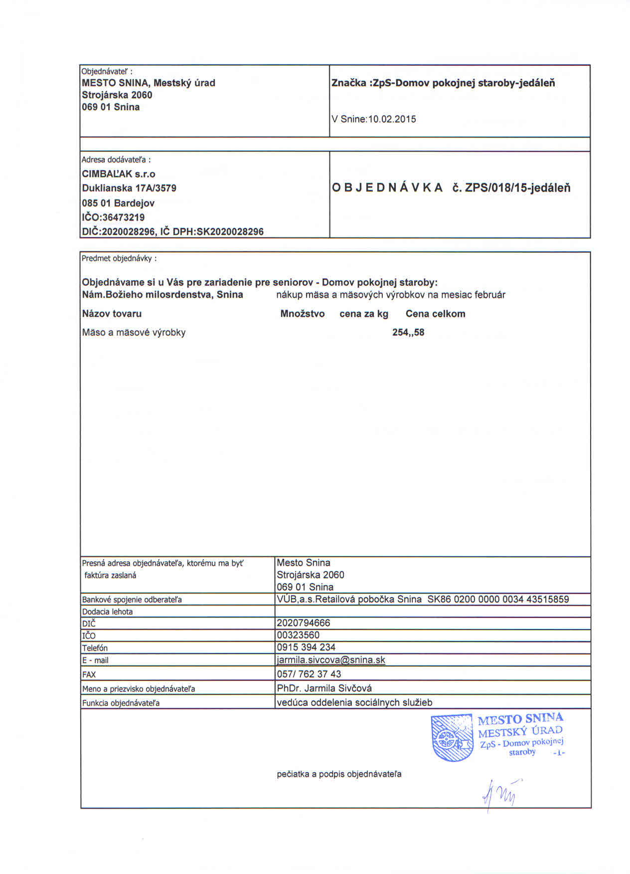 Detail objednávky ZPS/018/15-jedáleň
