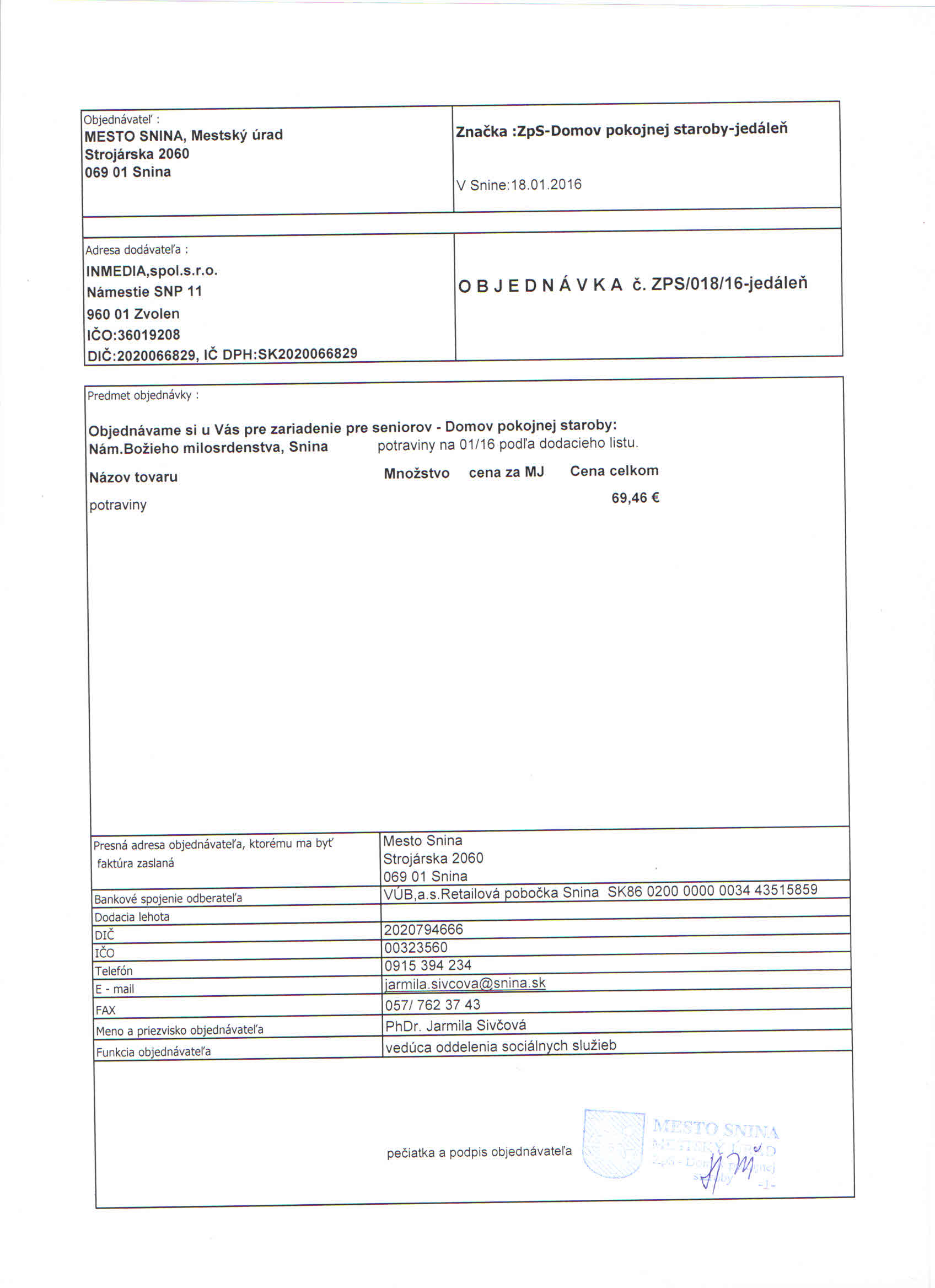 Detail objednávky ZPS/018/16-jedáleň