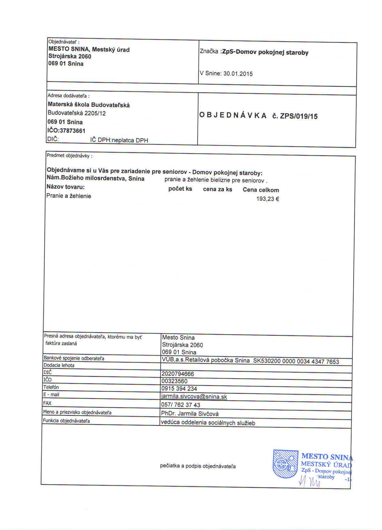 Detail objednávky ZPS/019/15