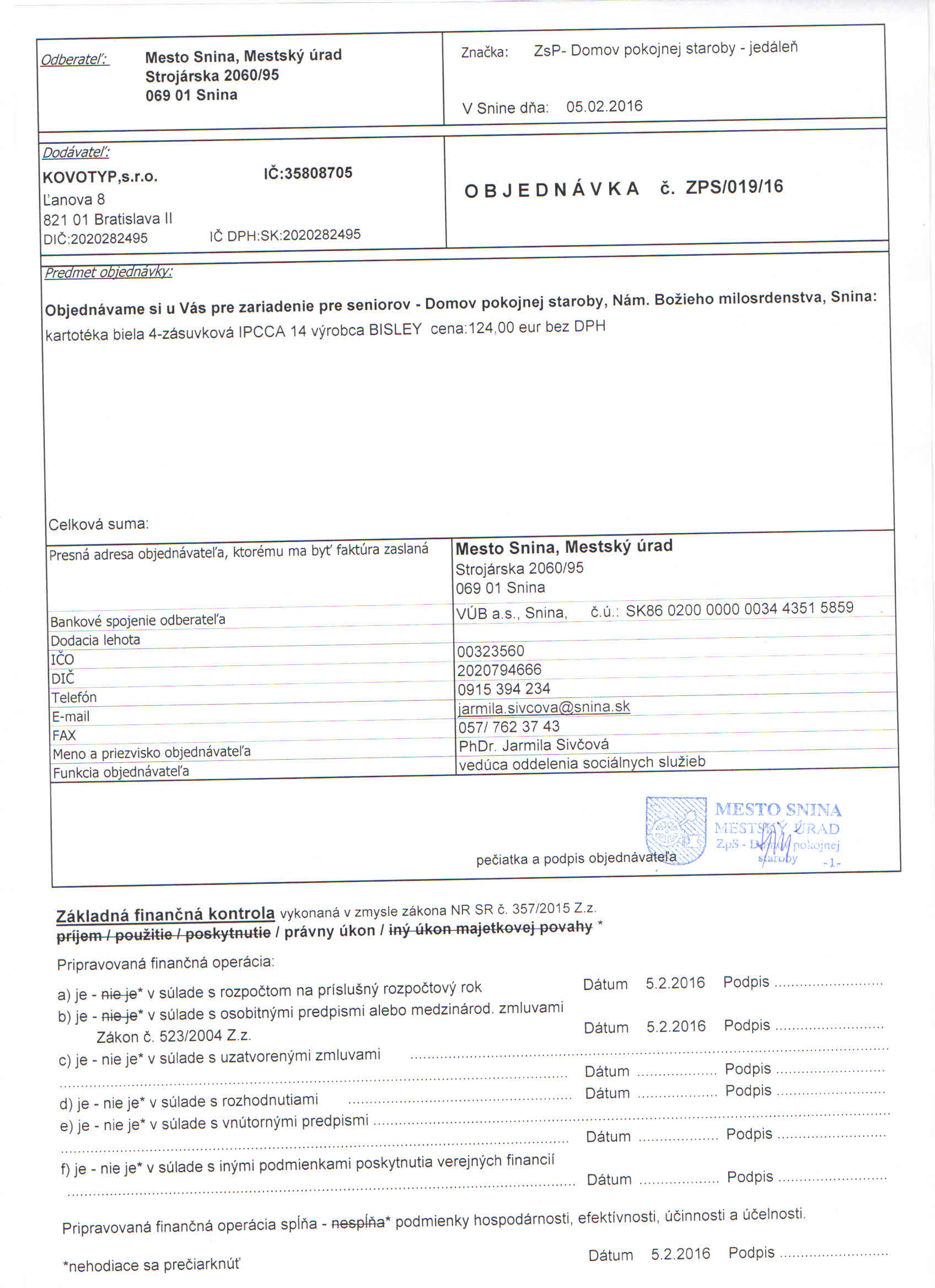 - Mesto Snina, Mestský úrad, Strojárska 2060/95, 069 01 Snin
