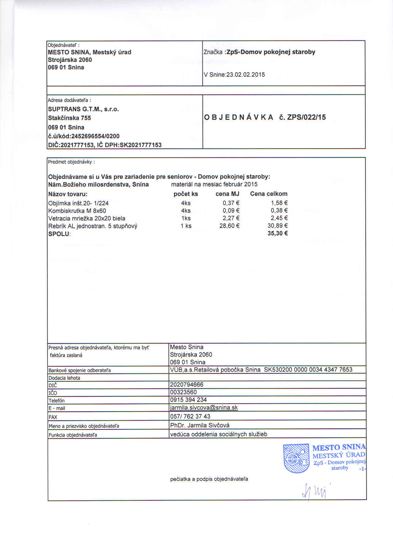 Detail objednávky ZPS/022/15