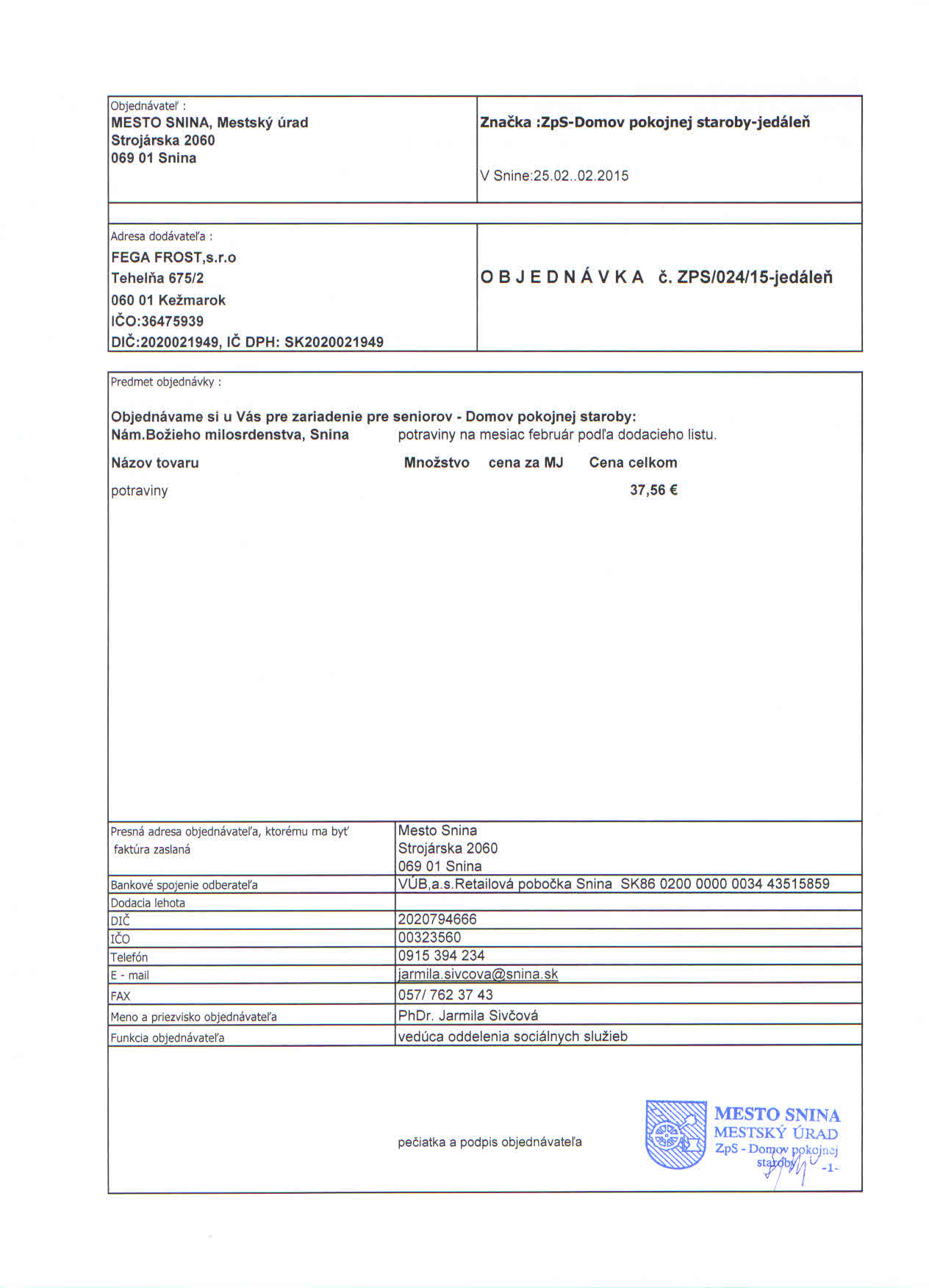 Detail objednávky ZPS/024/15-jedáleň
