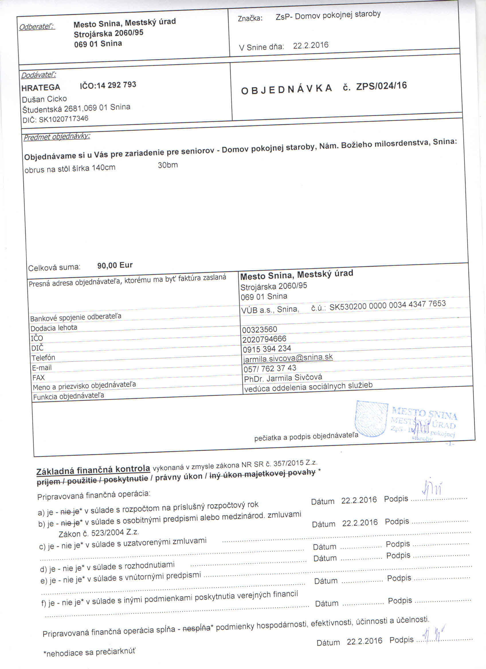 - Mesto Snina, Mestský úrad, Strojárska 2060/95, 069 01, Snina