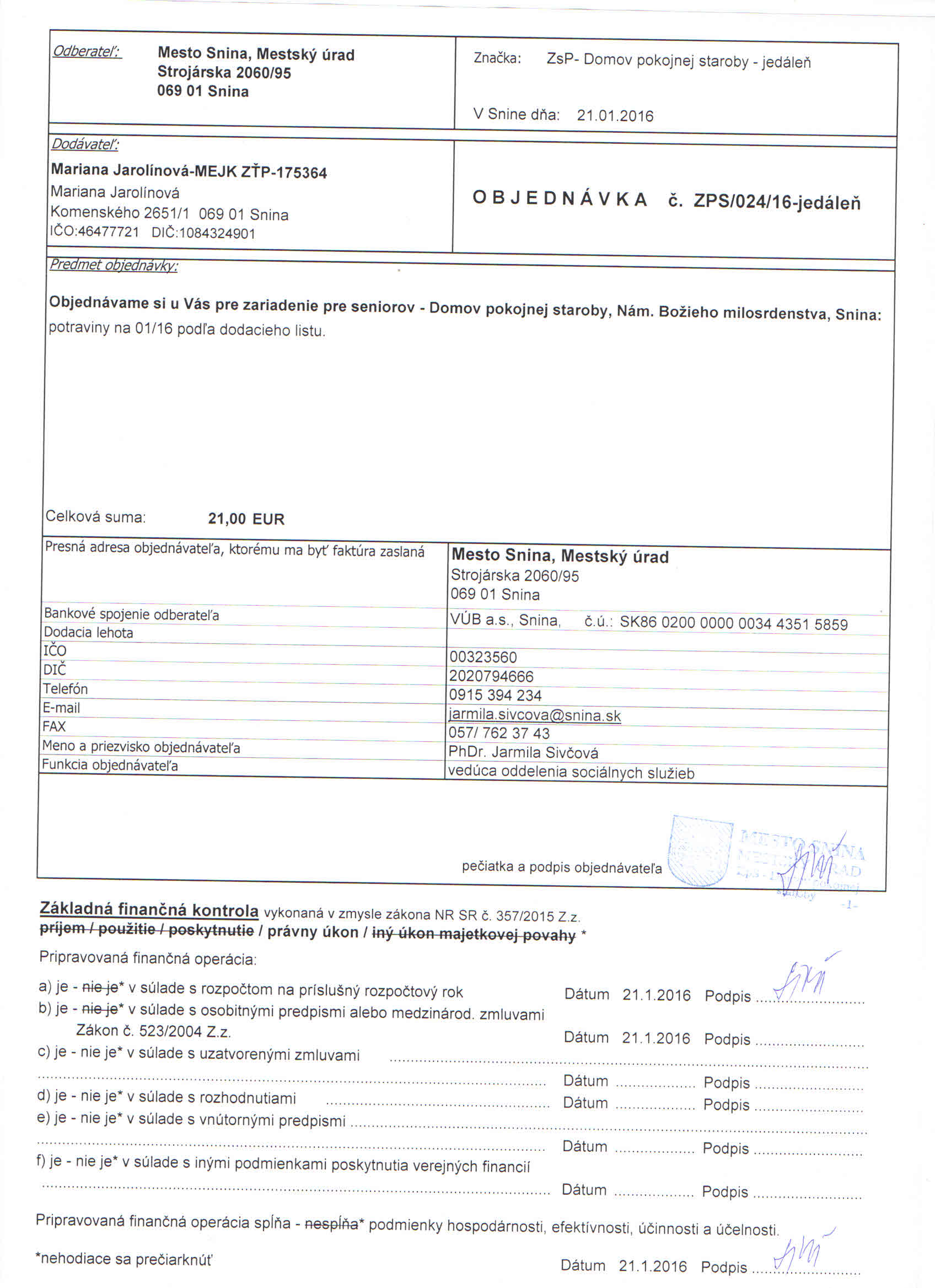 - Mesto Snina, Mestský úrad, Strojárska 2060/95, 069 01, Snina