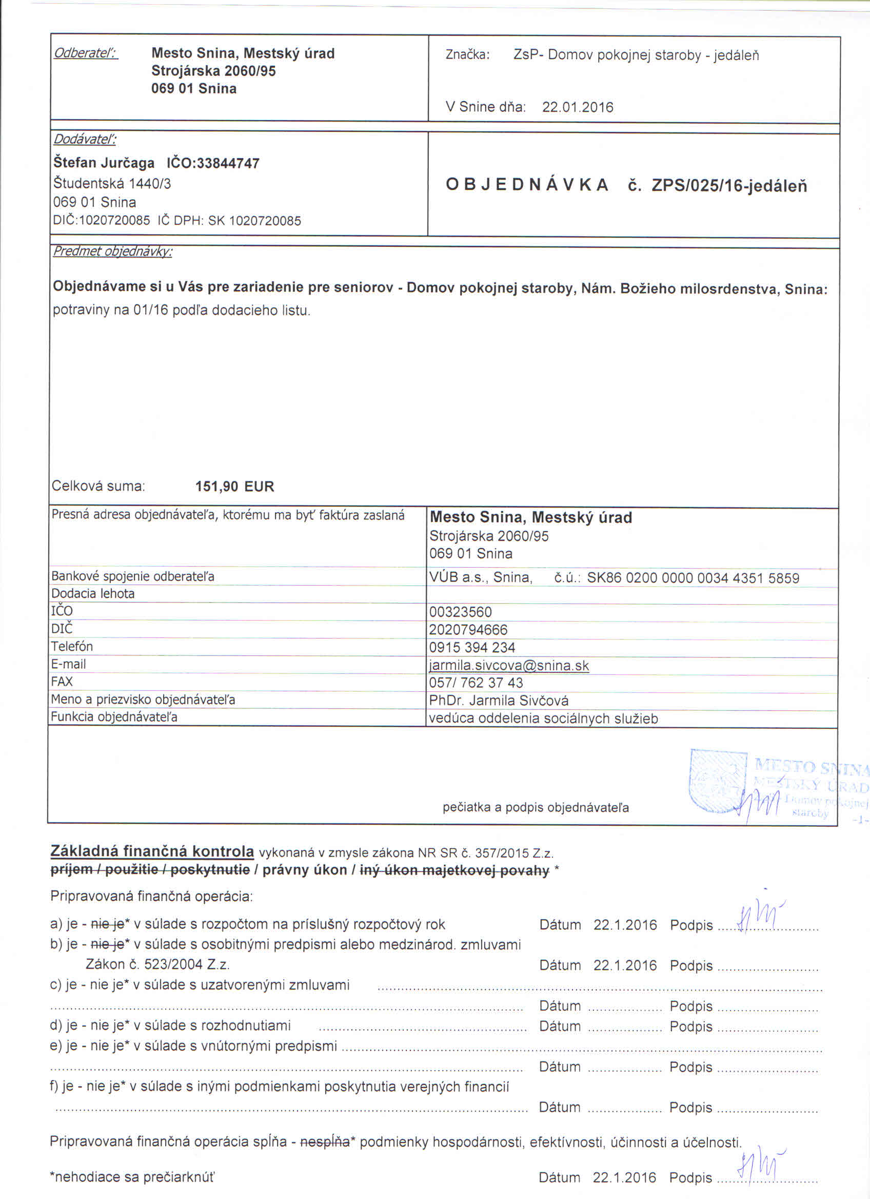 Detail objednávky ZPS/025/16-jedáleň