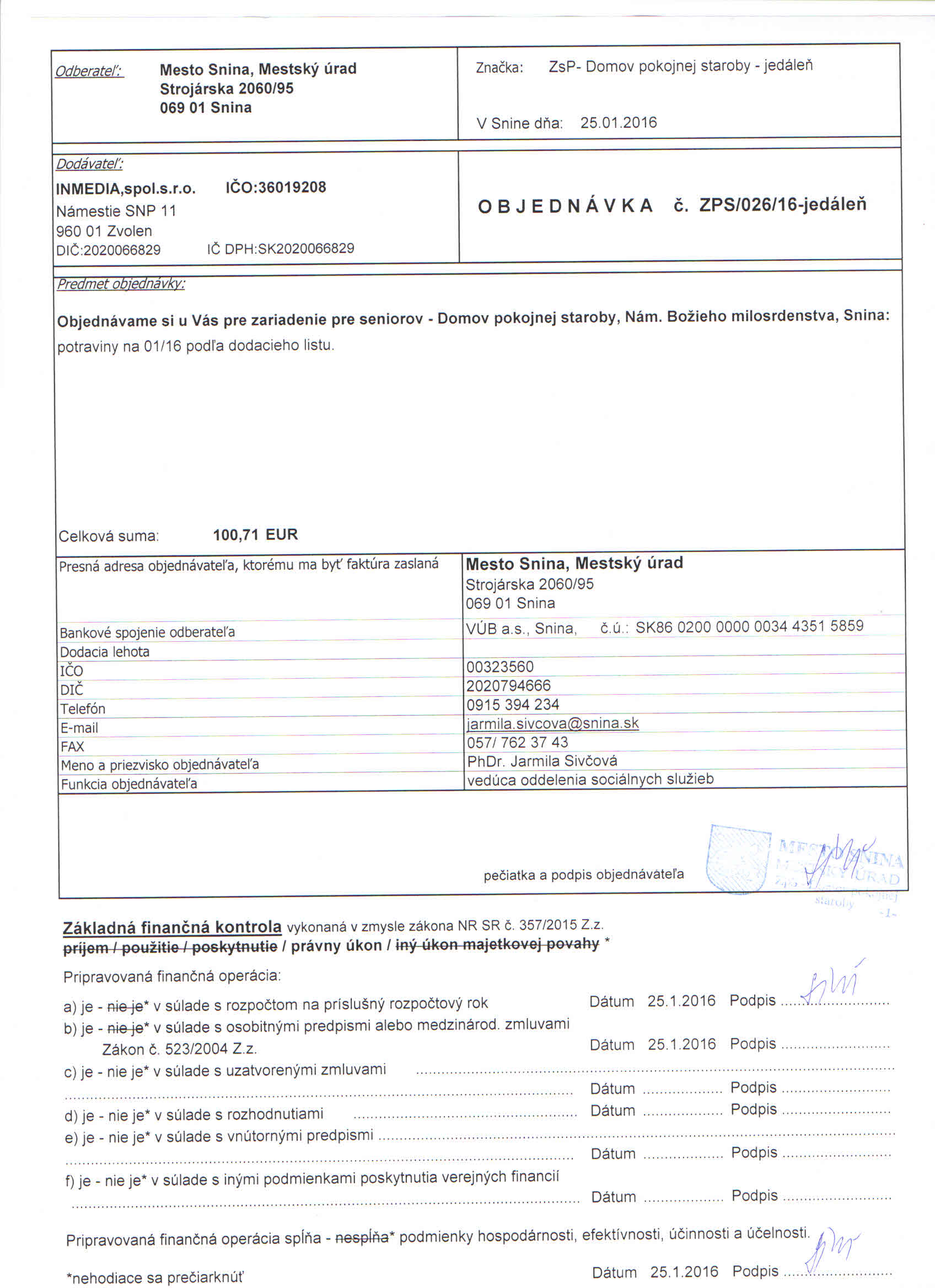 - potraviny na 01/16 podľa dodacieho listu