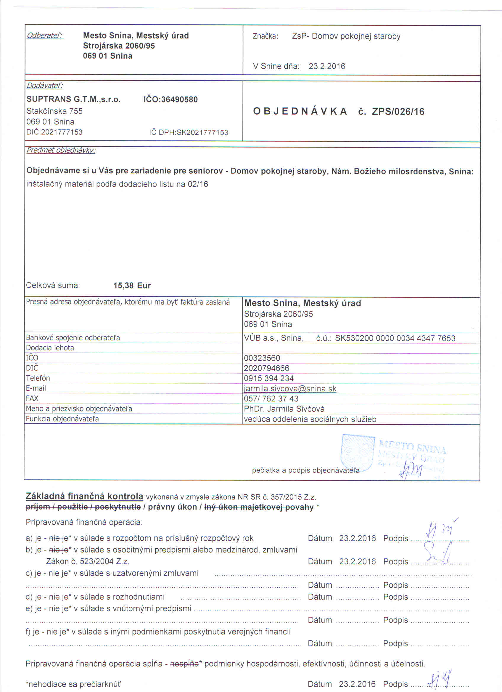 Detail objednávky ZPS/026/16