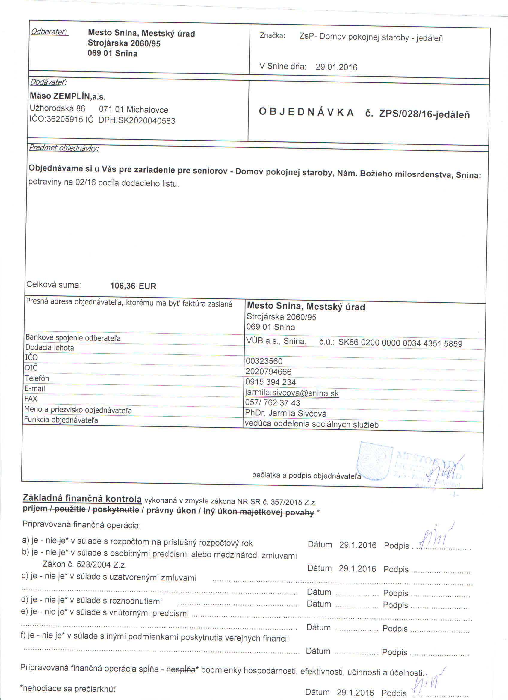 - Mesto Snina, Mestský úrad Snina, Strojárska 2060/95, 069 01 Snina