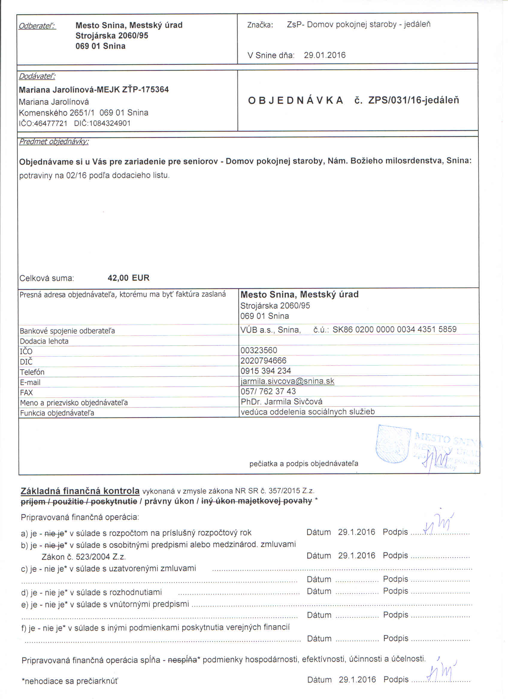 Detail objednávky ZPS/031/16-jedáleň