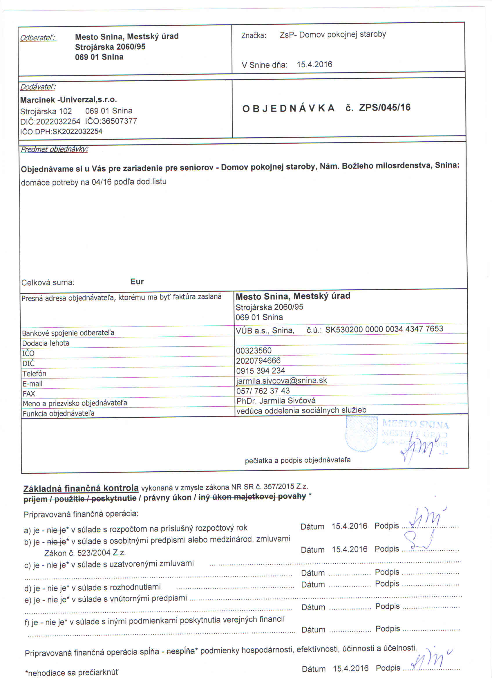 Detail objednávky ZPS/045/16