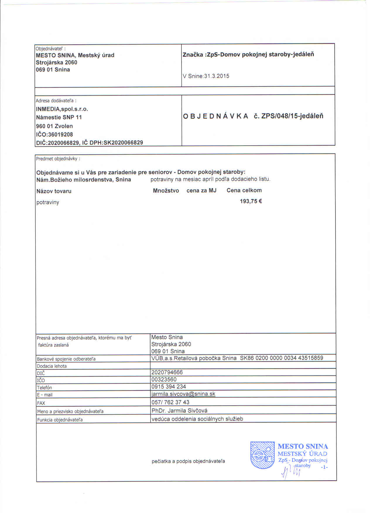 - nákup mäsa a mäsových výrobkov na mesiac marec