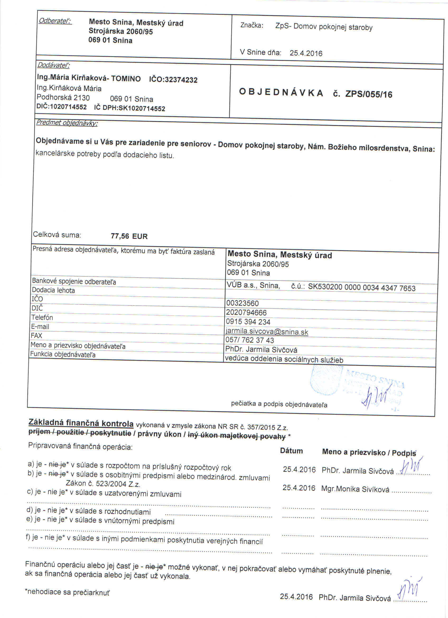 Detail objednávky ZPS/055/16