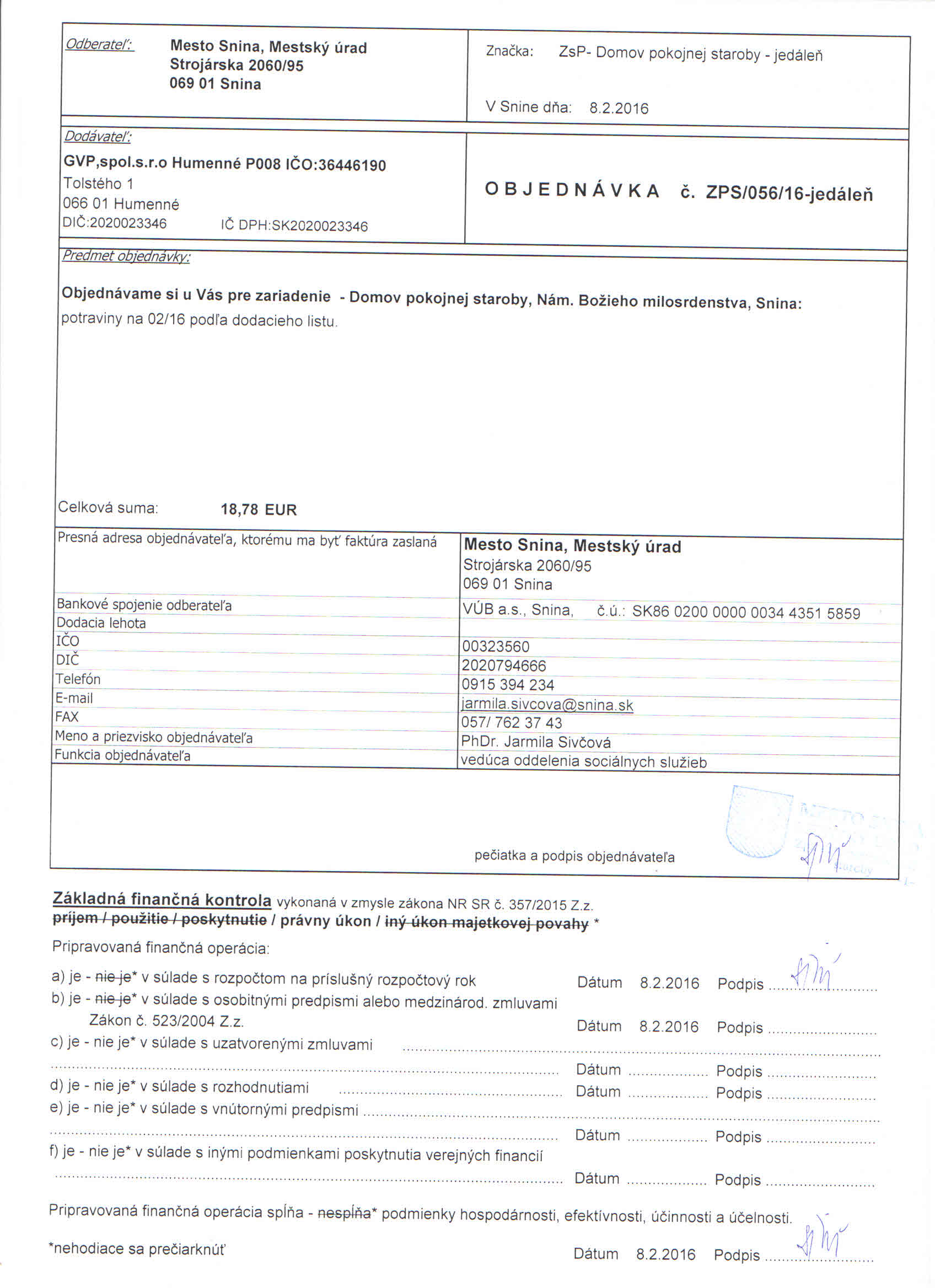 - Mesto Snina, Mestský úrad Snina, Strojárska 2060/95, 069 01 Snina