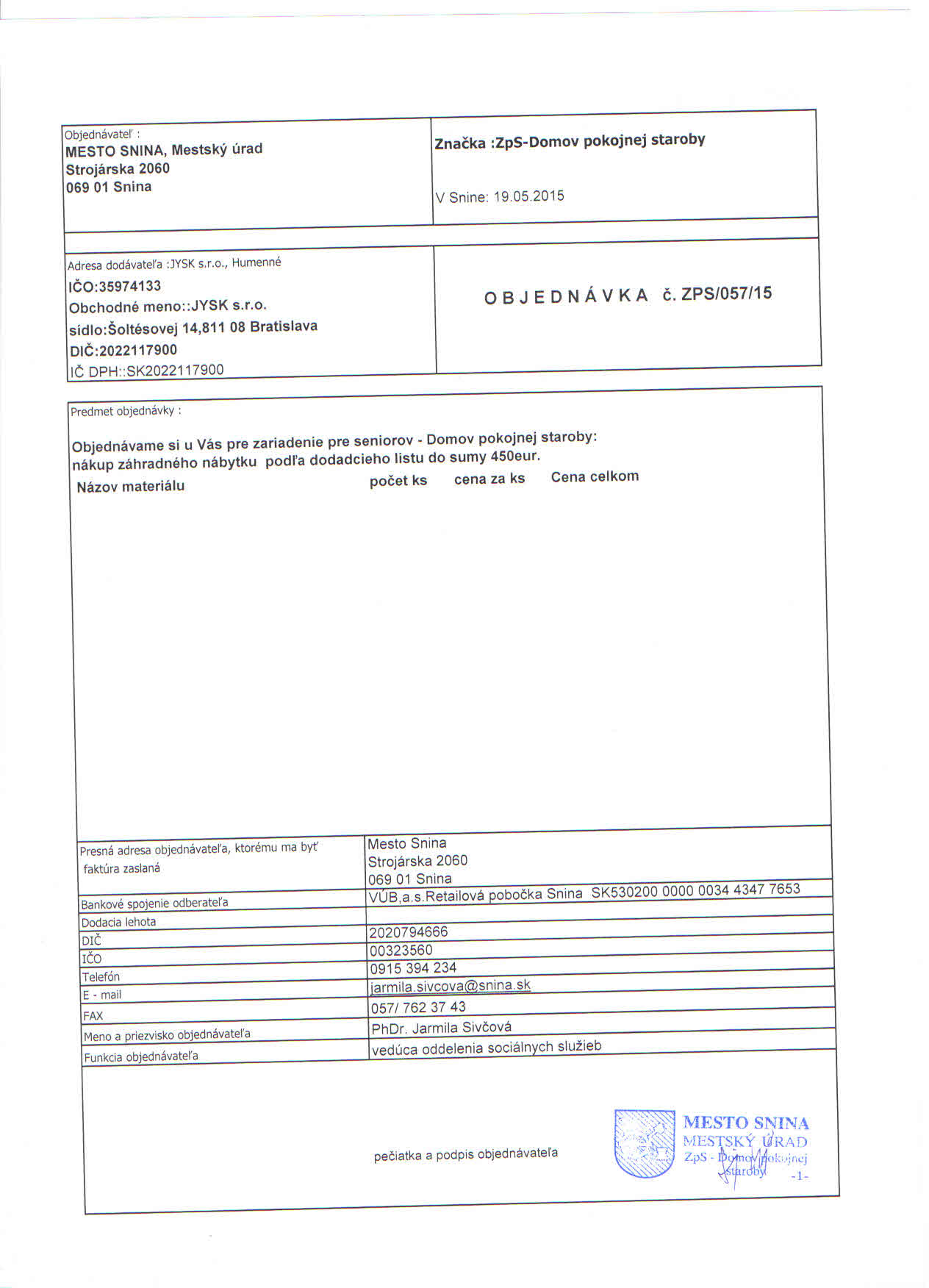 Detail objednávky ZPS/057/15