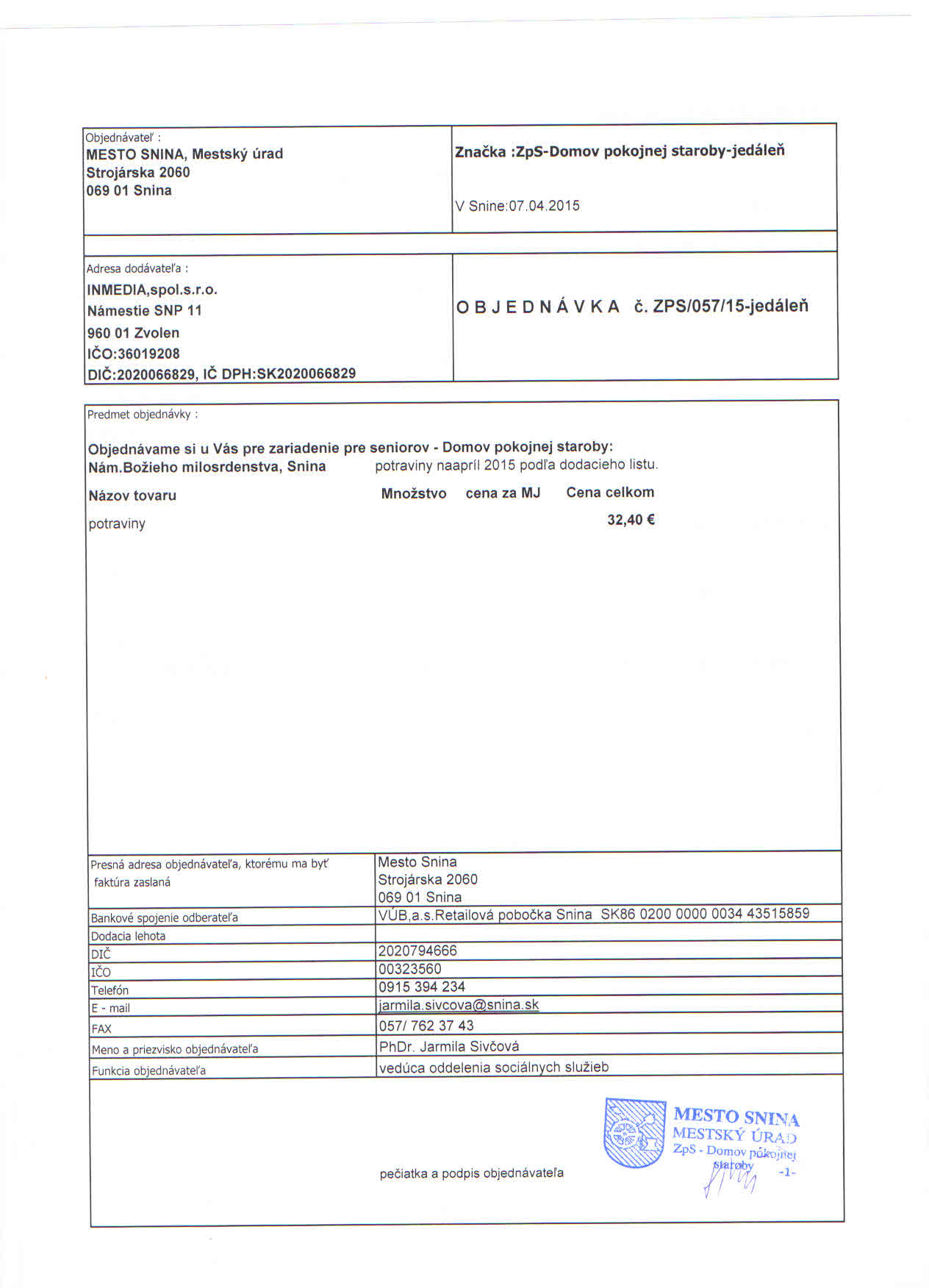 Detail objednávky ZPS/057/15- jedáleň