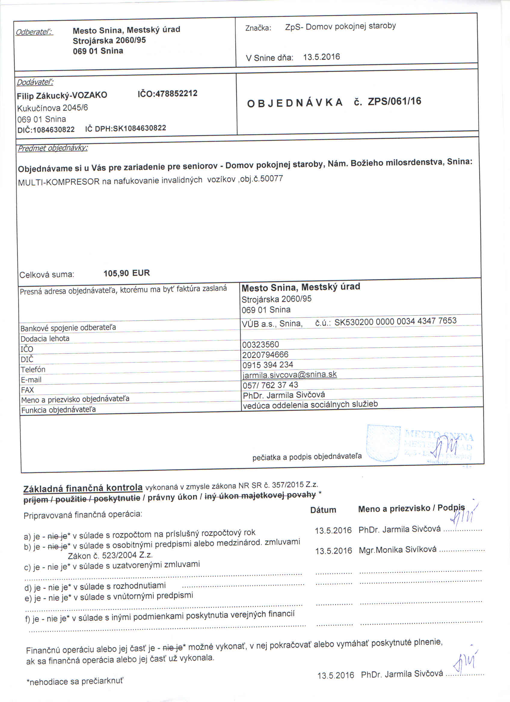 Detail objednávky ZPS/061/16
