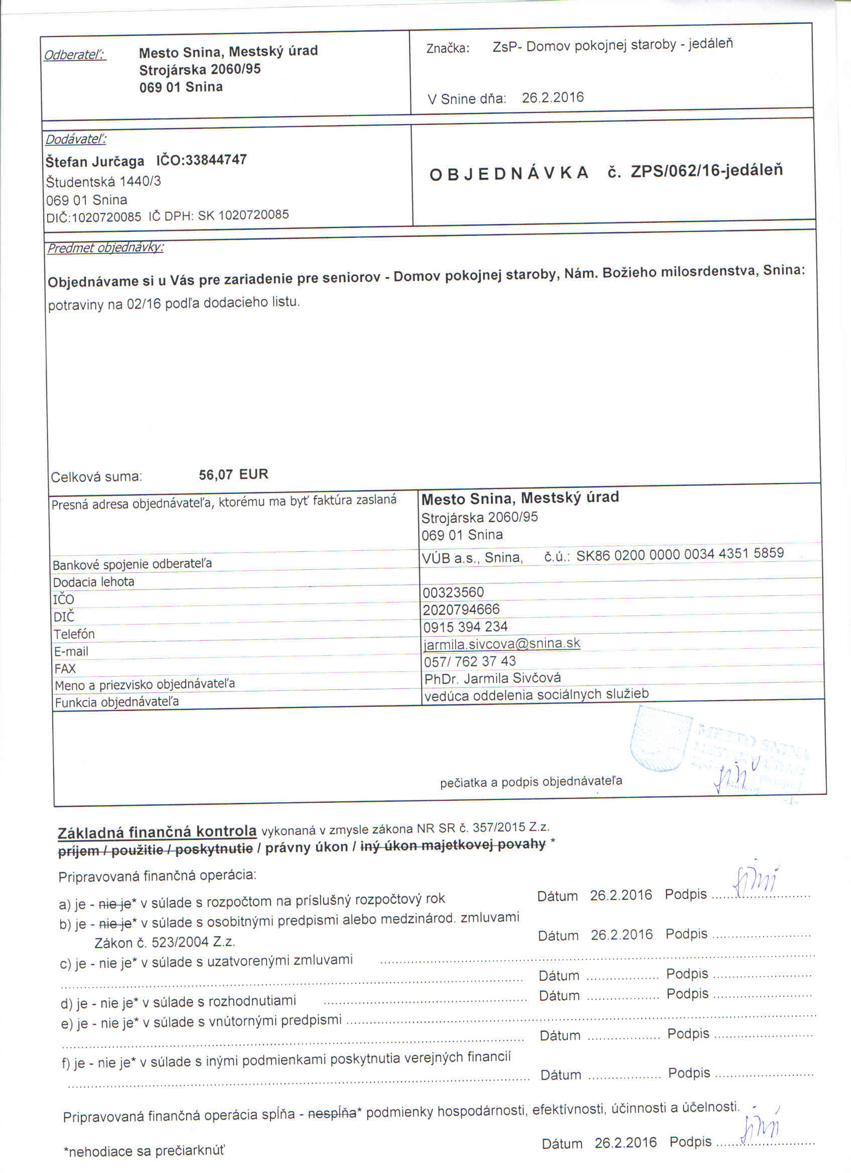 - Mesto Snina, Mestský úrad, Strojárska 2060/95, 069 01, Snina