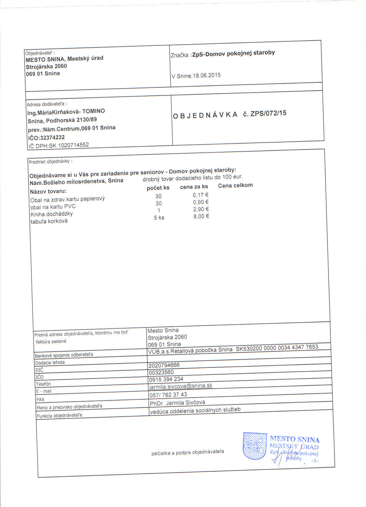 - Ing. Mária Kirňáková - TOMINO, Podhorská 2130, 069 01 Snina