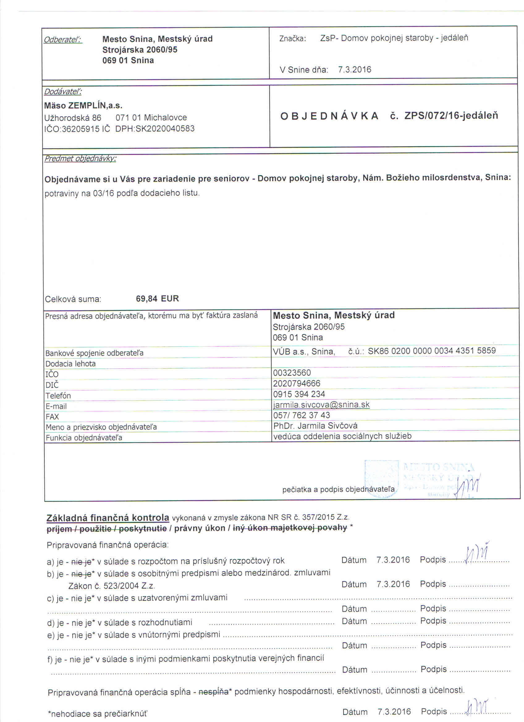 - Mäso ZEMPLÍN, a. s. , Užhorodská 86, 071 01 Michalovce