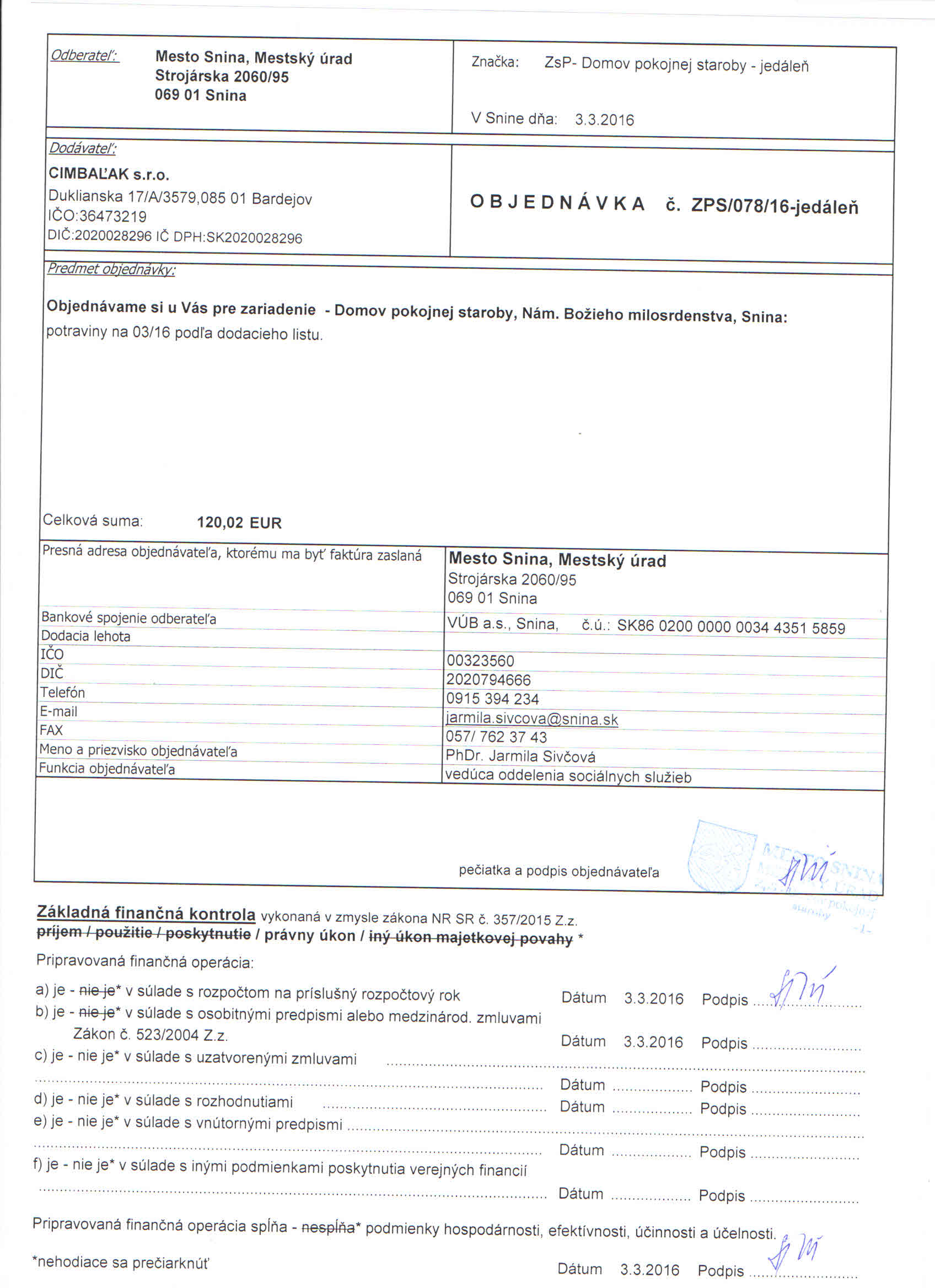 Detail objednávky ZPS/078/16-jedáleň