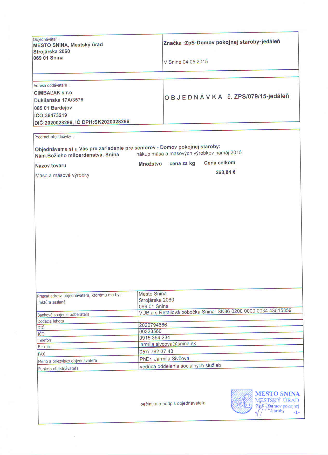 Detail objednávky ZPS/079/15- jedáleň