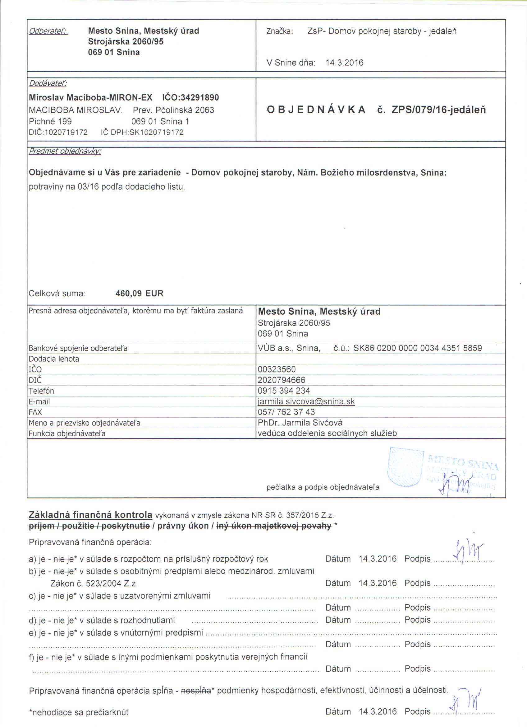 - Mesto Snina, Mestský úrad, Strojárska 2060/95, 069 01 Snin