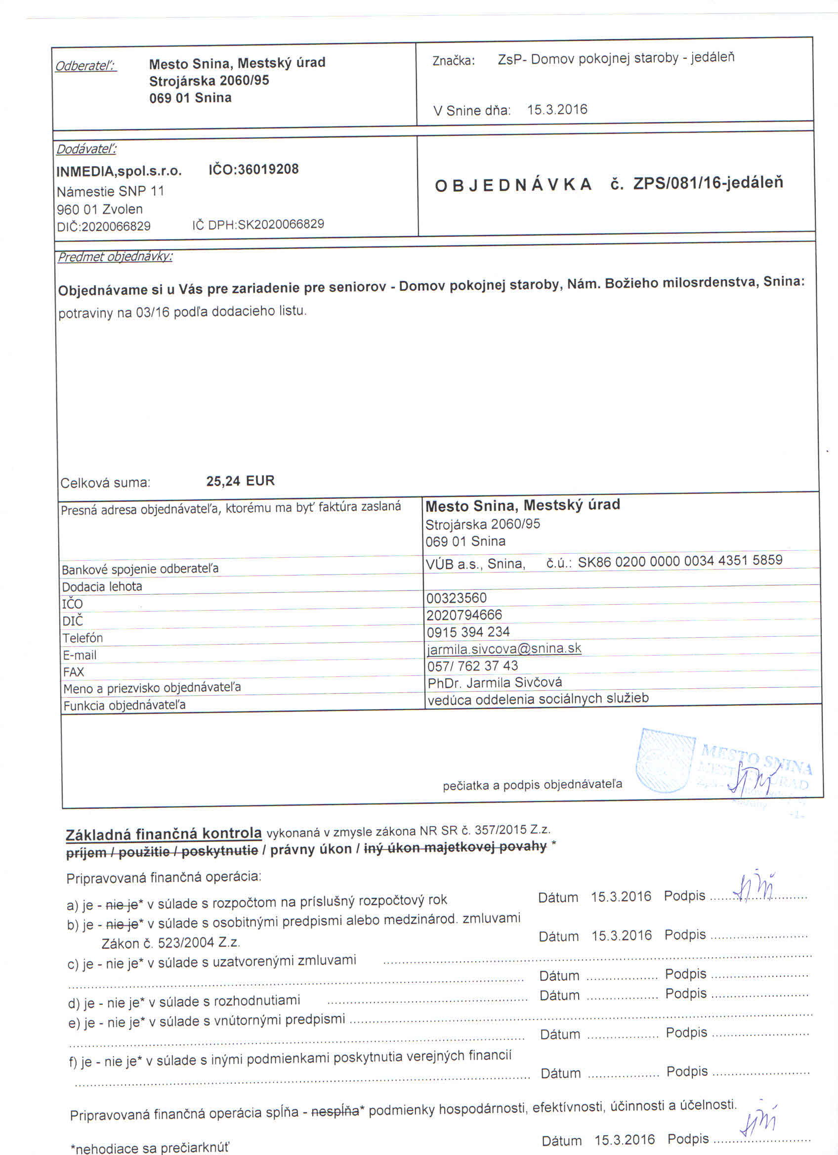 Detail objednávky ZPS/081/16-jedáleň