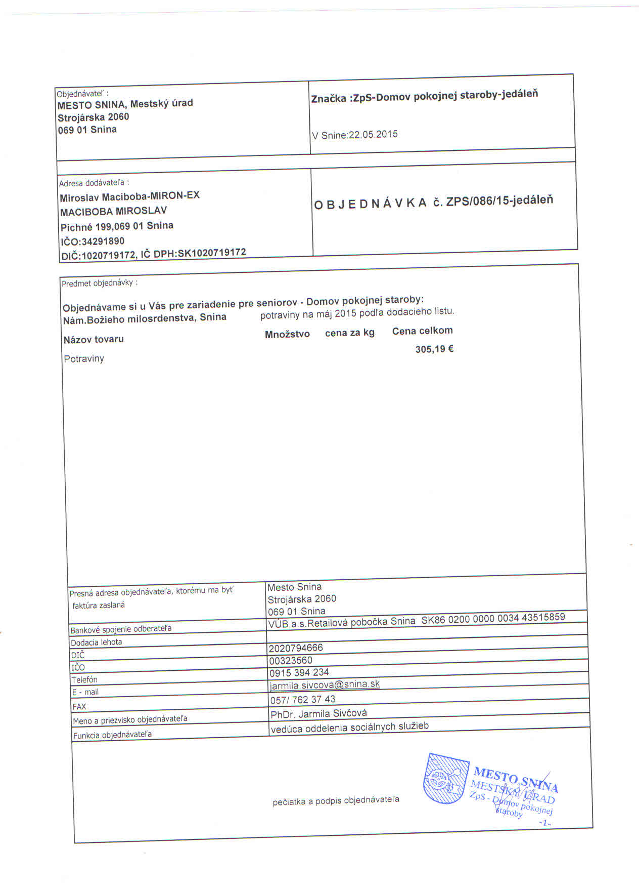 - potraviny na máj 2015 podľa dodacieho listu
